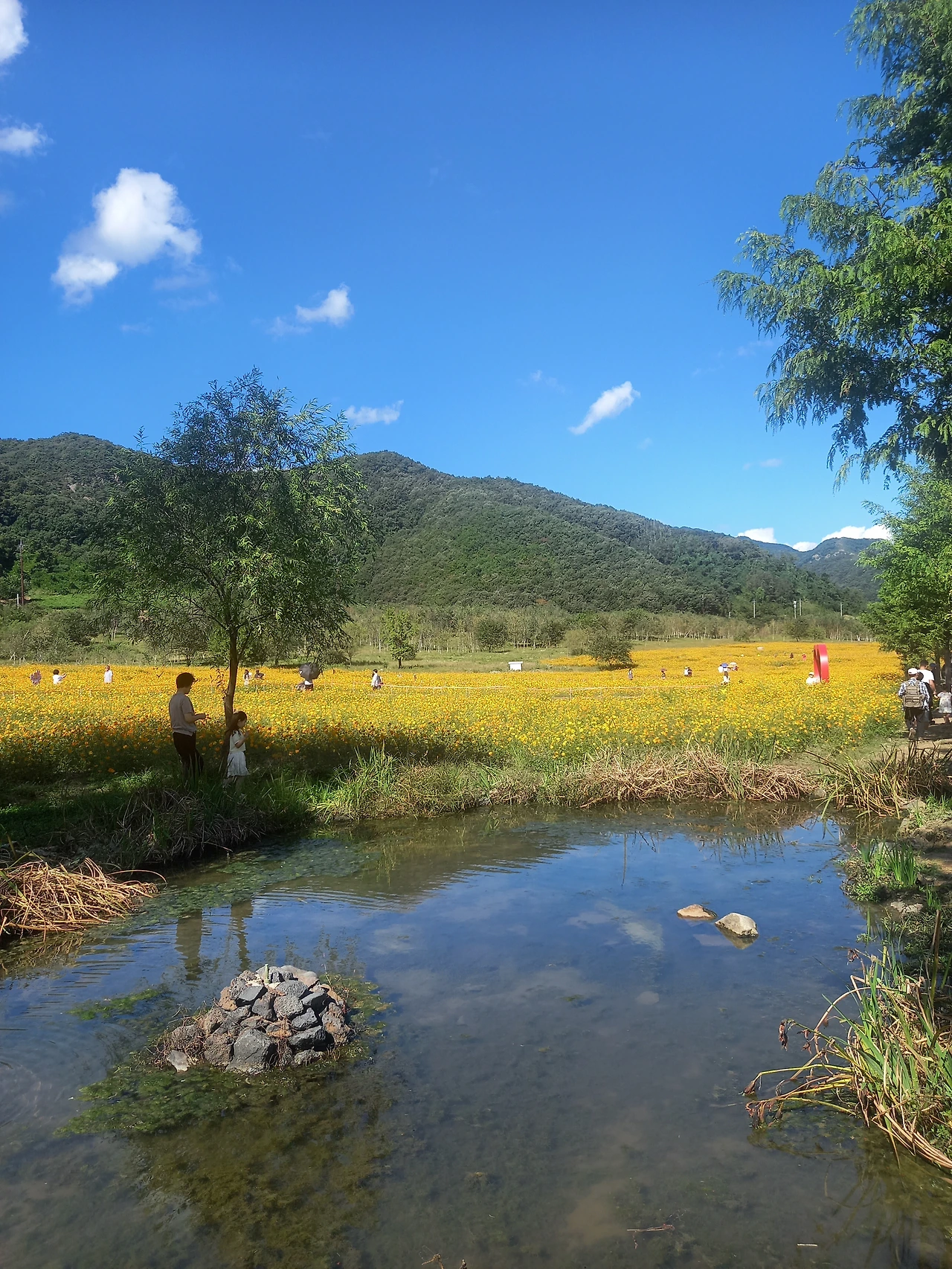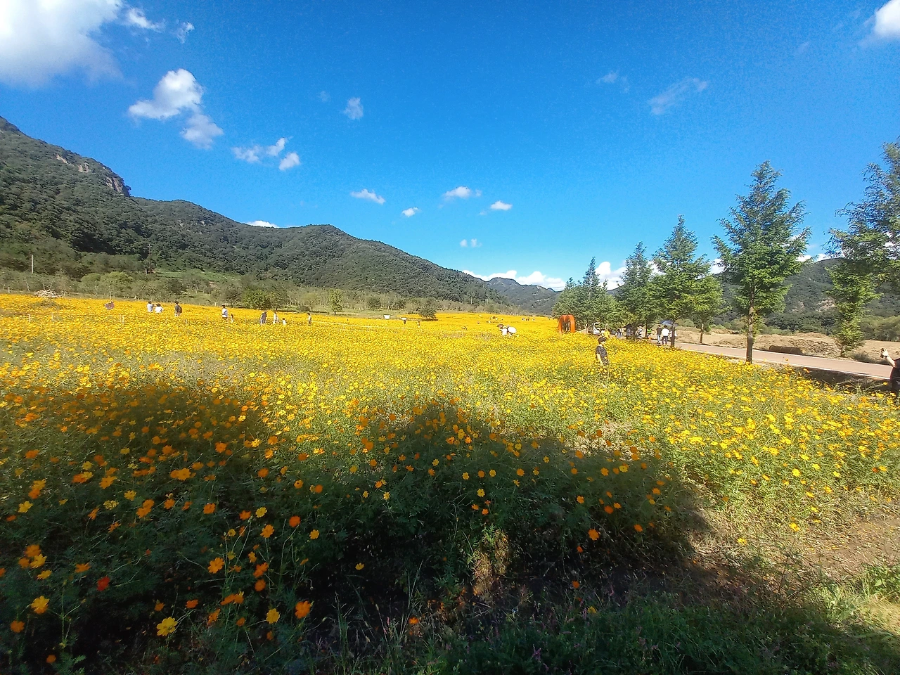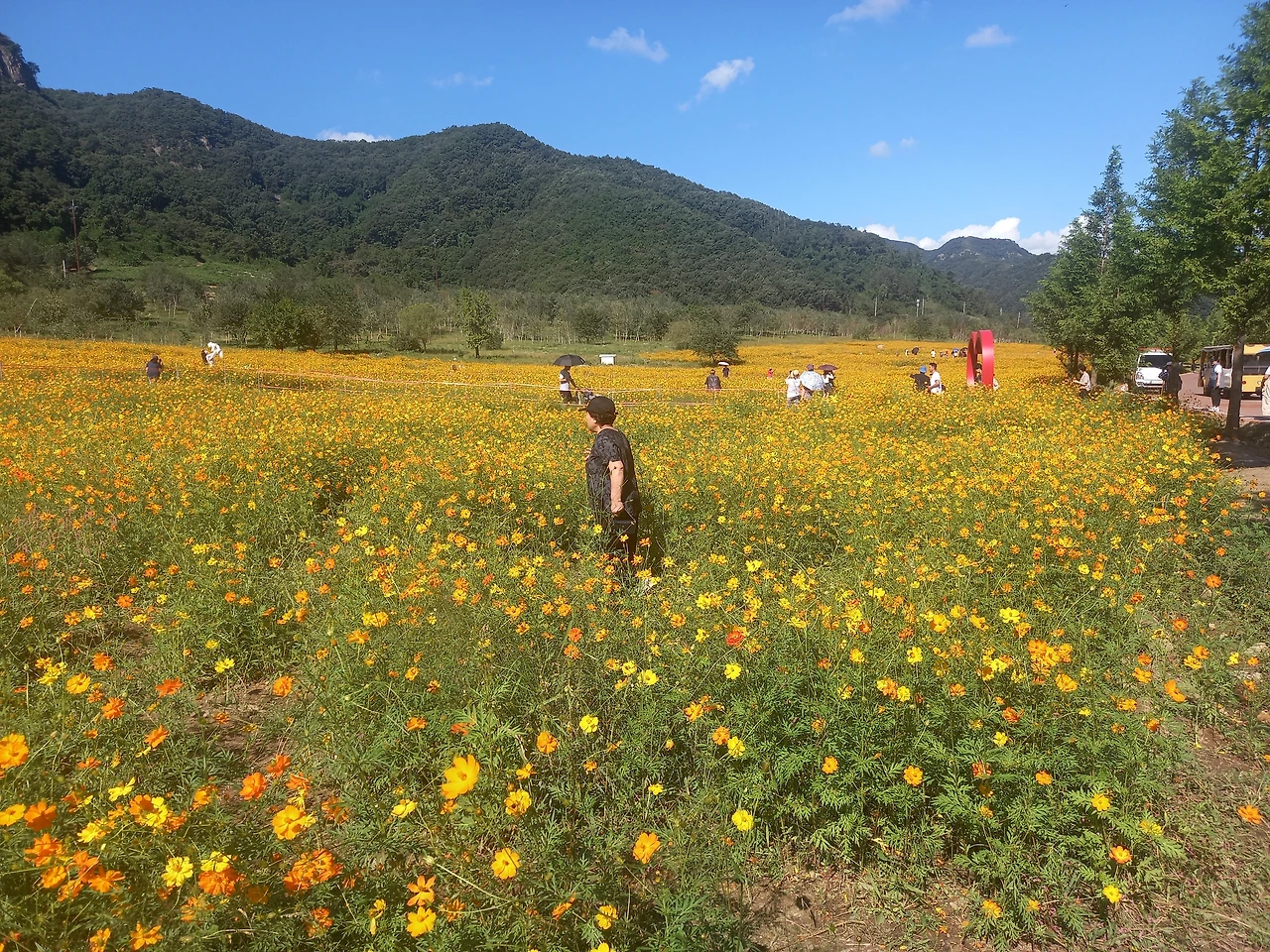 셔틀버스 출발지 지점에는 황화 코스모스 등의 꽃밭이 환상의 모습을 하고 있었다. 버스를 타고 그 길을 지나가는데 짧은 줄 알았던 이 꽃밭은 끝이 어디인가는 생각이 들 정도로 상당히 방대했다.