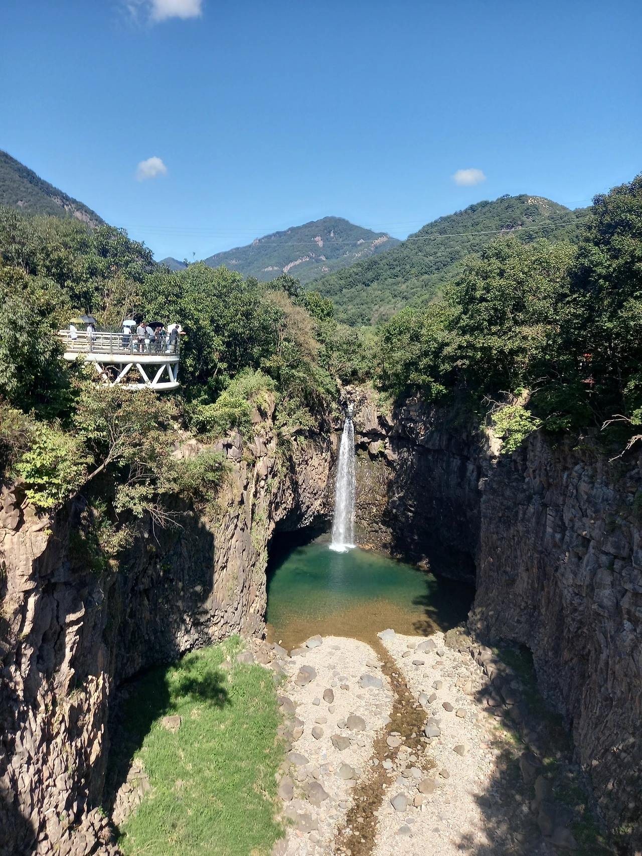 보존을 위해 폭포 아래 일부 조성된 데크길 외 폭포와 협곡 쪽으로 갈 수는 없었다. 아쉬웠지만 덕분에 이렇게 멋지게 보존되고 있었기에 이러한 조치를 충분히 수긍할 수 있었다. 둘레길을 통해 동편에서 재인 폭포를 보다 가까이서도 보았다. 그 북쪽에 선녀탕이라는, 딱 보면 왜 선녀탕이라고 하는지 알 수 있는 지점도 있었는데 역시나 에메랄드 빛깔을 자랑하고 있어 무척이나 아름답더라.
