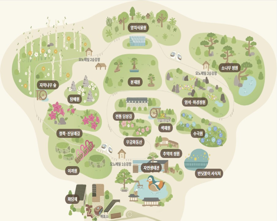 길을 둘러둘러 갈수록 아름다운 광경을 더 많이 볼 수 있었기 때문이다. 모노레일이 지나가는 모습도 보였는데 오히려 저걸 타고 가는 방문객들이 안 됐다는 생각이 들었다. 이 아름다운 관경을 제대로 보지 못하고 극히 일부만 보며 빠르게 지나갔기 때문이다.