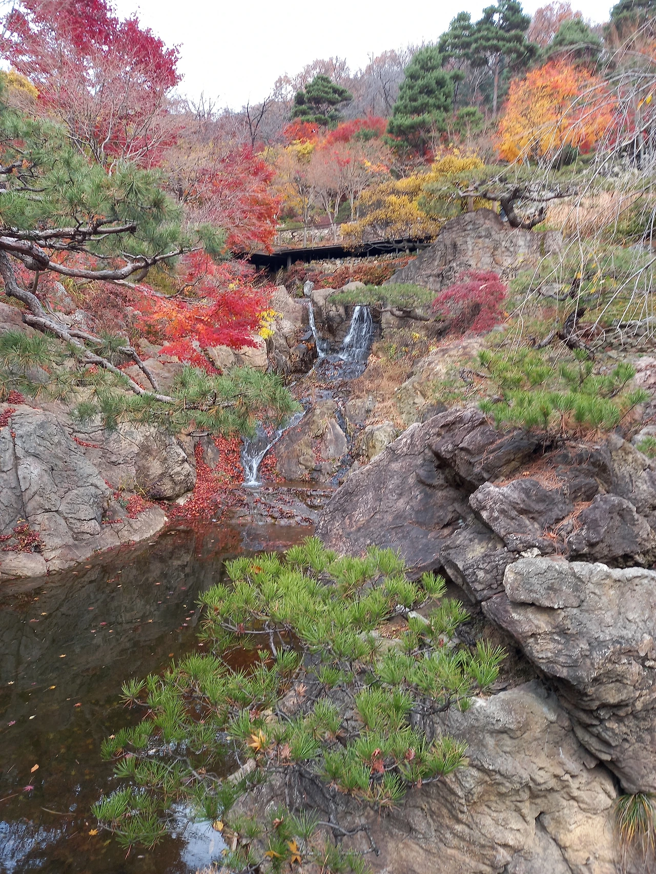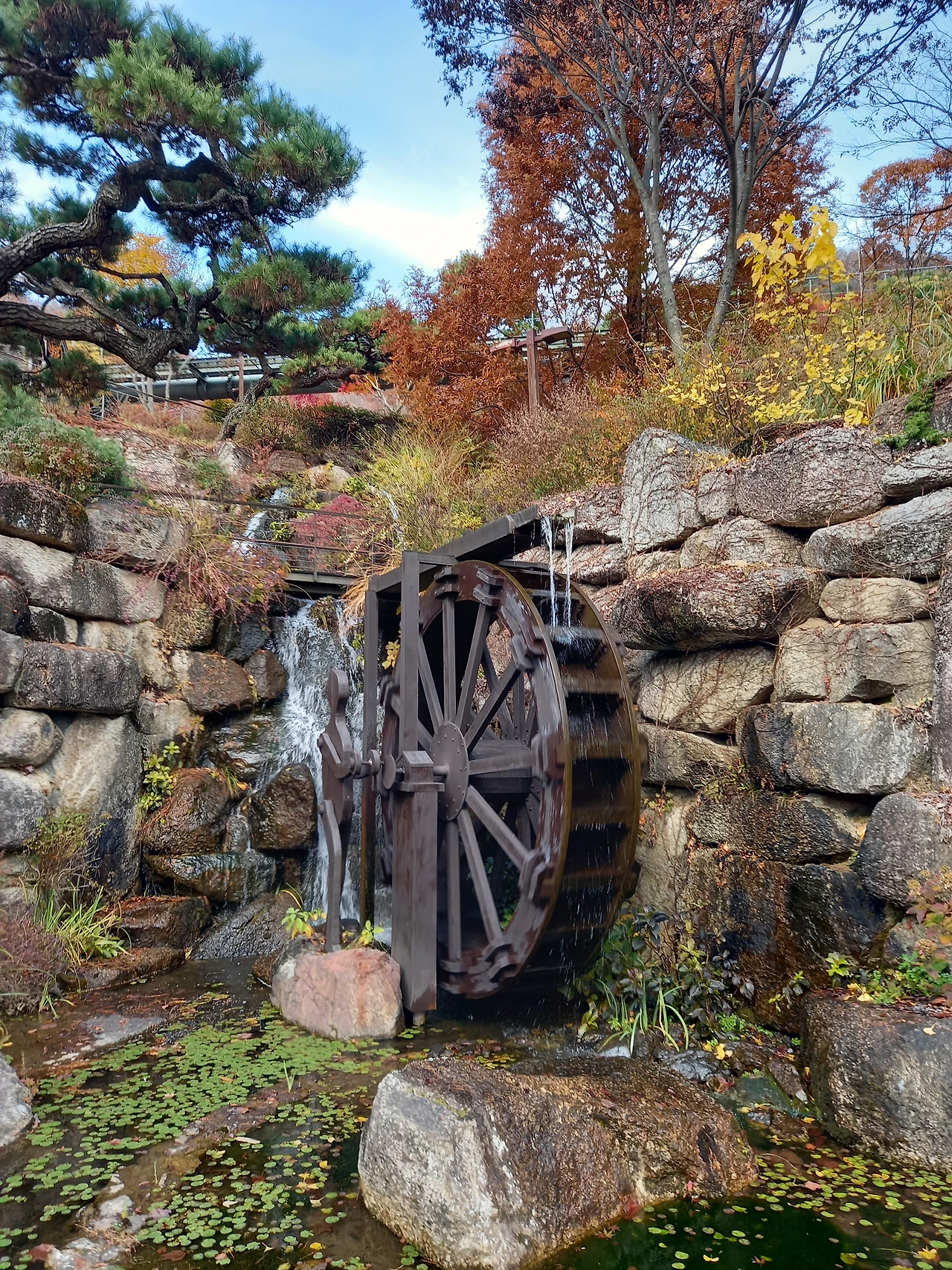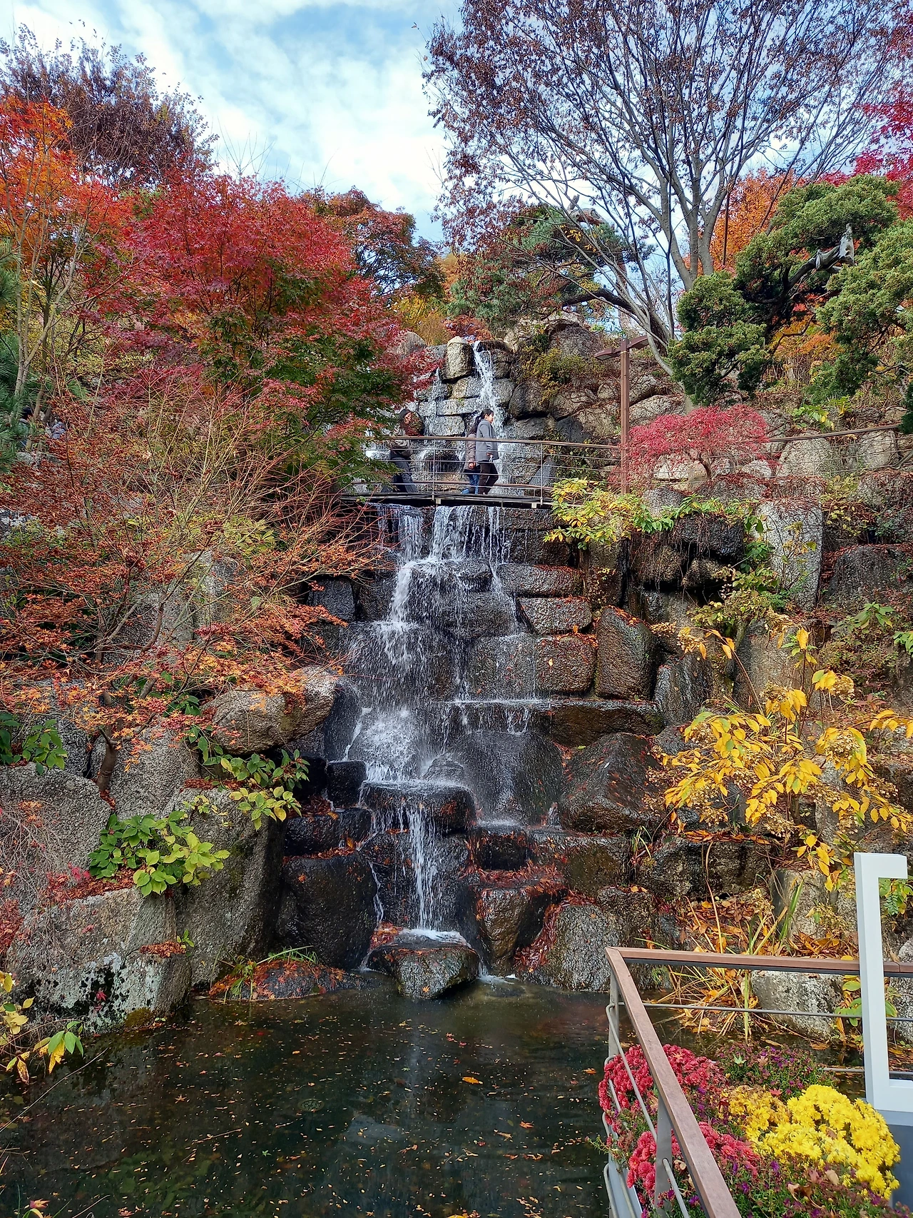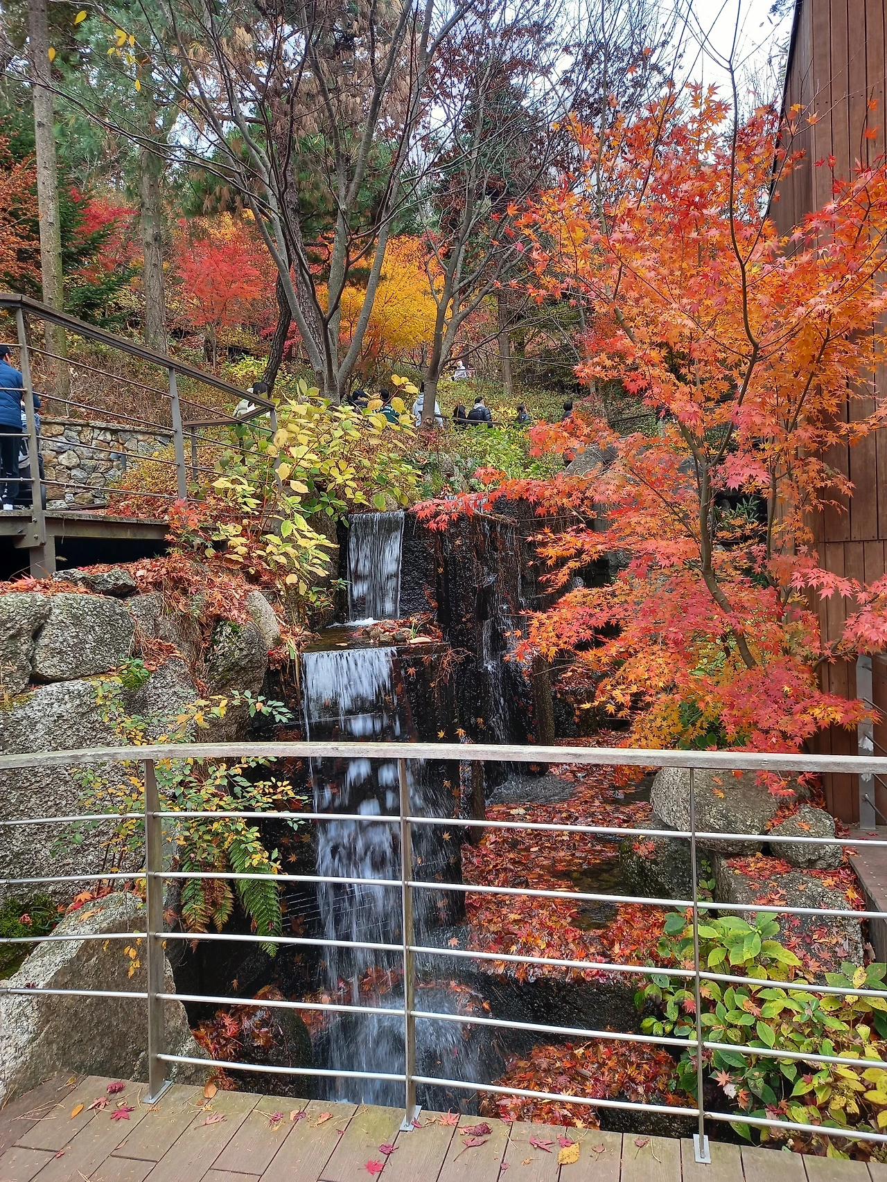 이외에도 탐매원, 철쭉. 진달래길, 수국원 등 봄이나 여름에 돋보일 테마원도 있었고, 계절을 딱히 안타는 정원인 색채원, 전통담장길과 추억의 정원 등 특색 있는 테마원들이 가득했다. 아무튼 이날은 단풍이 절정인 시기여서 사방팔방으로 펼쳐진 단풍이 매우 돋보였다. 그런데 단풍과 함께 나의 감탄을 자아냈던 것은 곳곳에서 흐르는 물이었다. 어떻게 흐르는 물길이 이렇게나 많을 수 있나 싶었다.