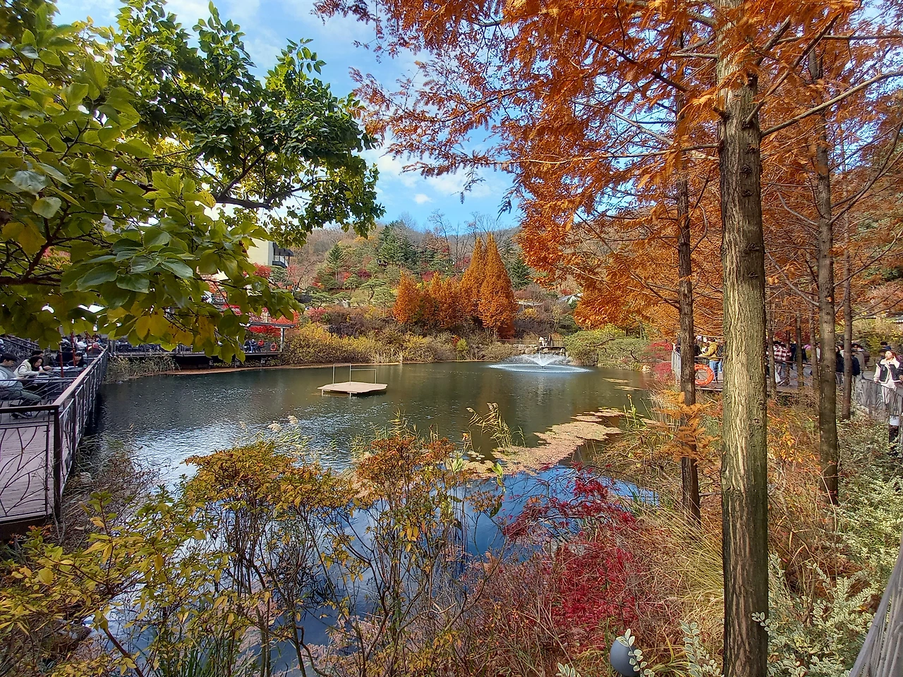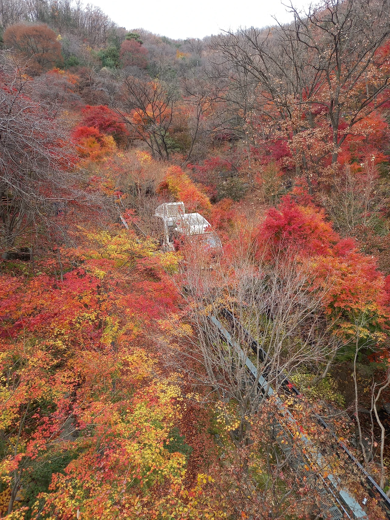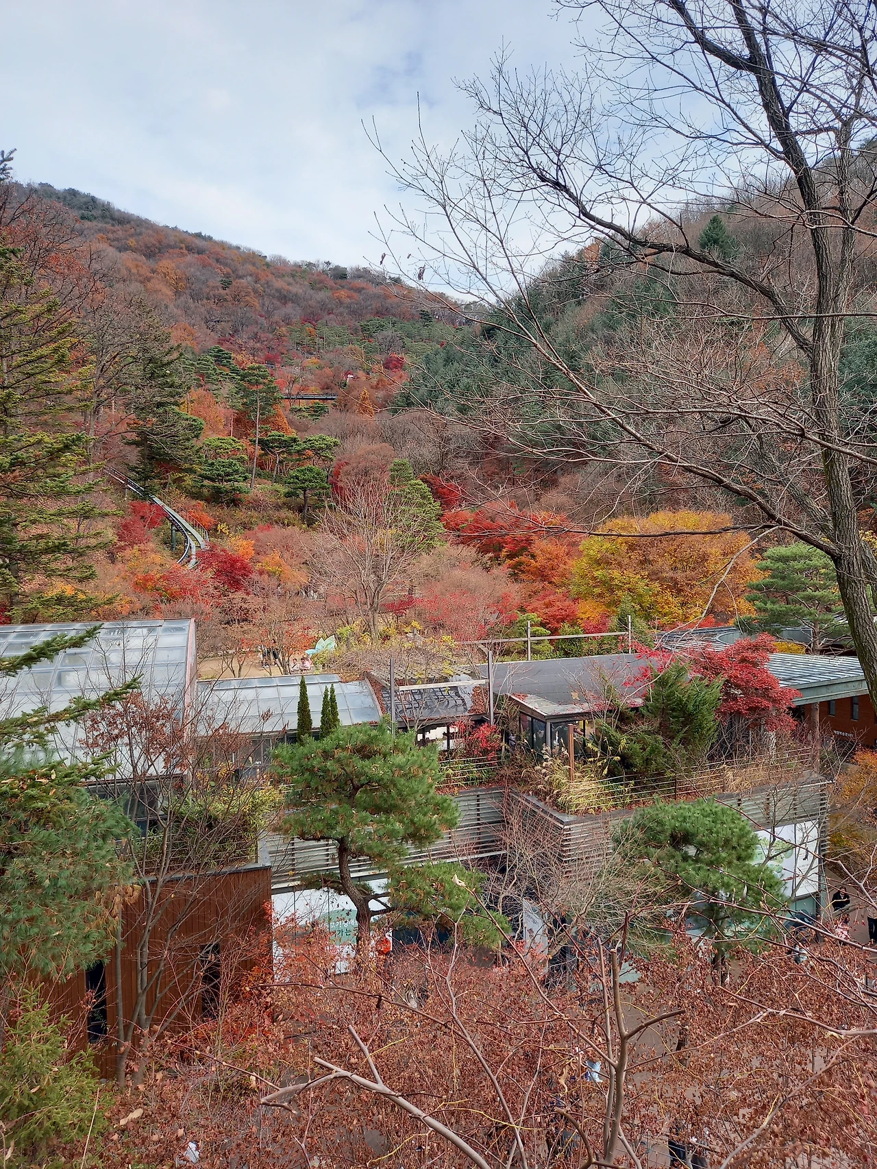 자연생태관과 이끼원, 그리고 하트 조형물이 있는 다리를 건너는 길을 느리게 걷는 동안은 사방팔방, 근거리와 원거리까지 저마다 조금씩 다른 알록달록한 색상의 단풍을 원 없이 구경할 수 있었다. 환상적이었고, 그야말로 장관이었다. 근 몇 년 간 본 단풍을 다 합친 것보다 더 많은 단풍을 봤다. 군데군데 계단 등으로 빠르게 올라갈 수 있는 길이 있었지만 그러지 않았다.