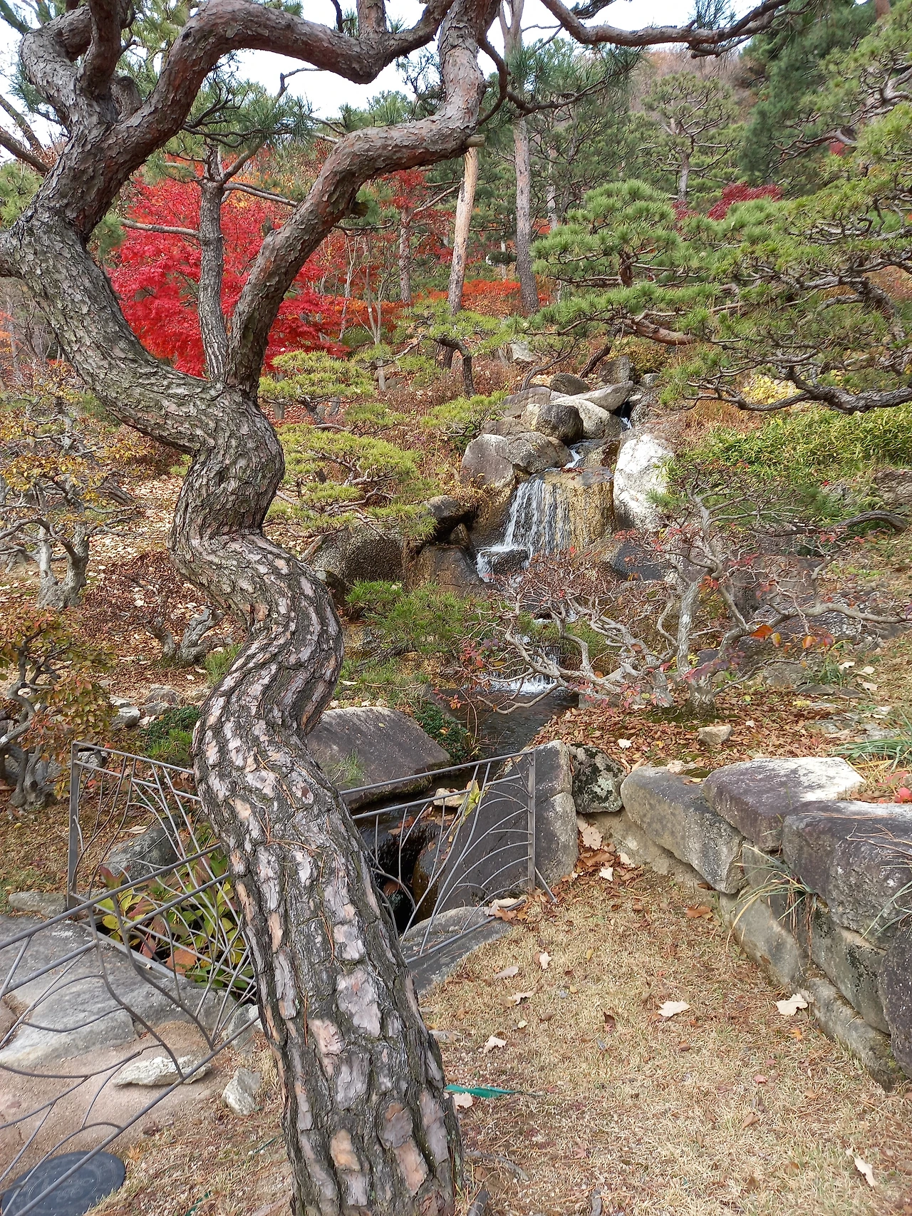 나무를 화분에 심어 가꾸는 예술작품인 분재를 전시한 분재원도 인상적이었다. 역시나 분재가 조금 듬성듬성 전시돼 있겠지 정도로만 예상했는데 이전의 테마원과 마찬가지로 꽤나 방대해 또 한 번 놀랐다. 550점가량이나 전시돼 있다고 한다. 550점이나 말이다.