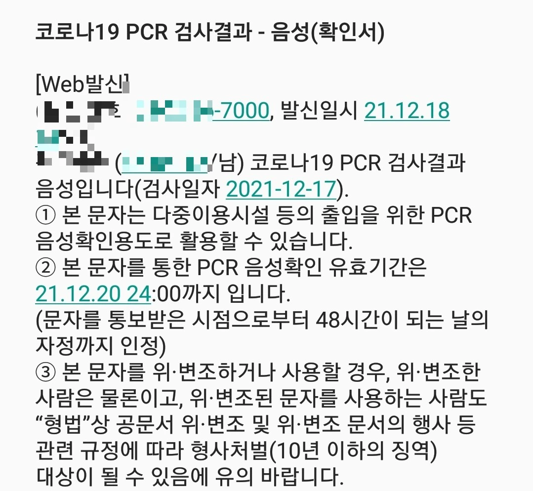 검사 결과는 다음 날 아침에 바로 문자 메시지로 받을 수 있었다. ‘음성’이었다. 과정만큼이나 결과도 빠르게 확인할 수 있어 매우 만족스러웠다.