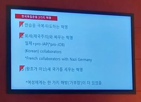 강연에서는 한국 독립운동의 3가지 특성과 함께, 3가지 혁명과 3가지 건국에 대한 이야기도 펼쳐졌다.