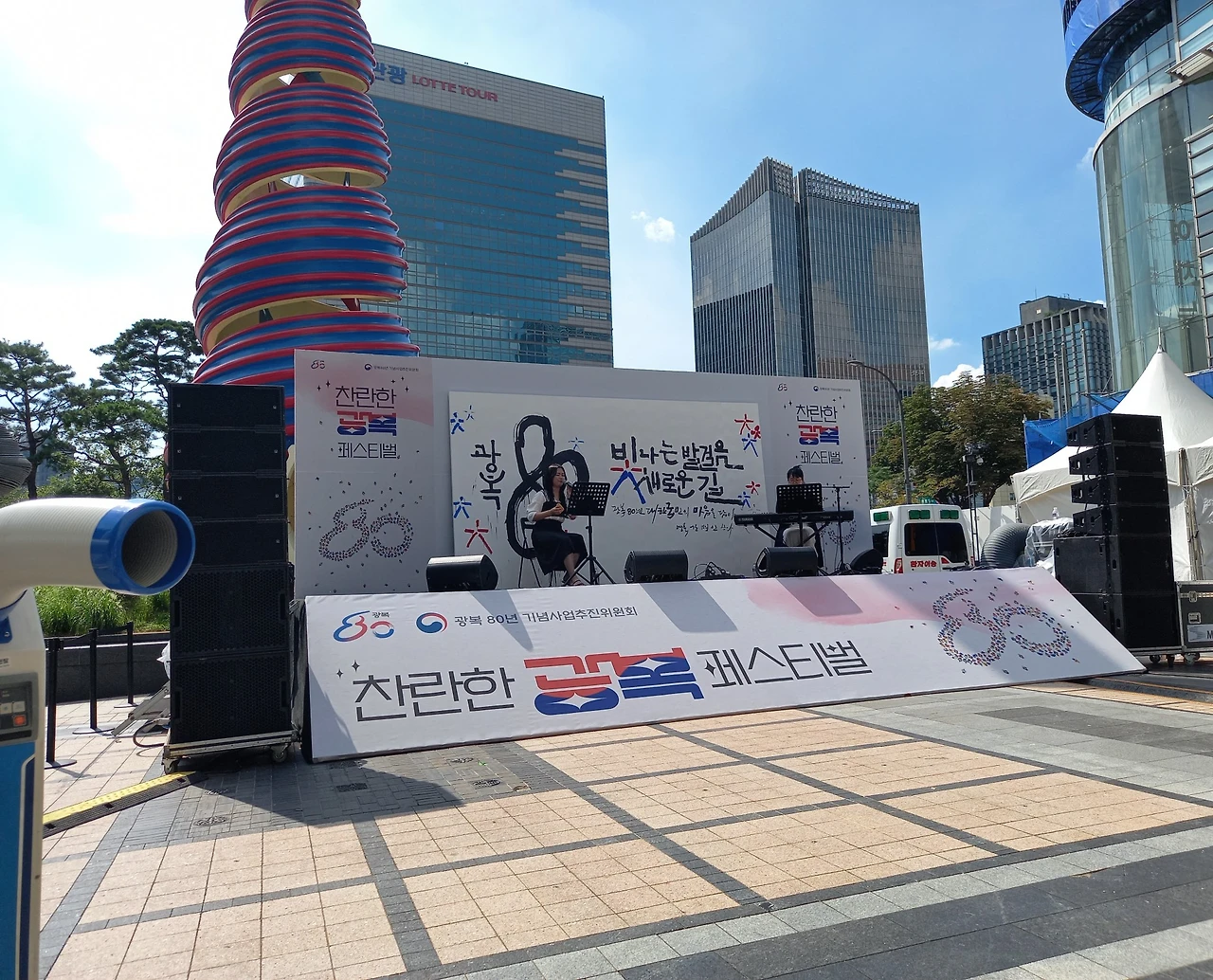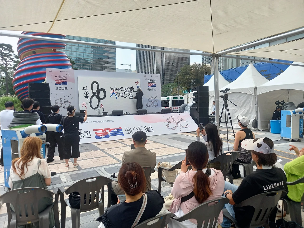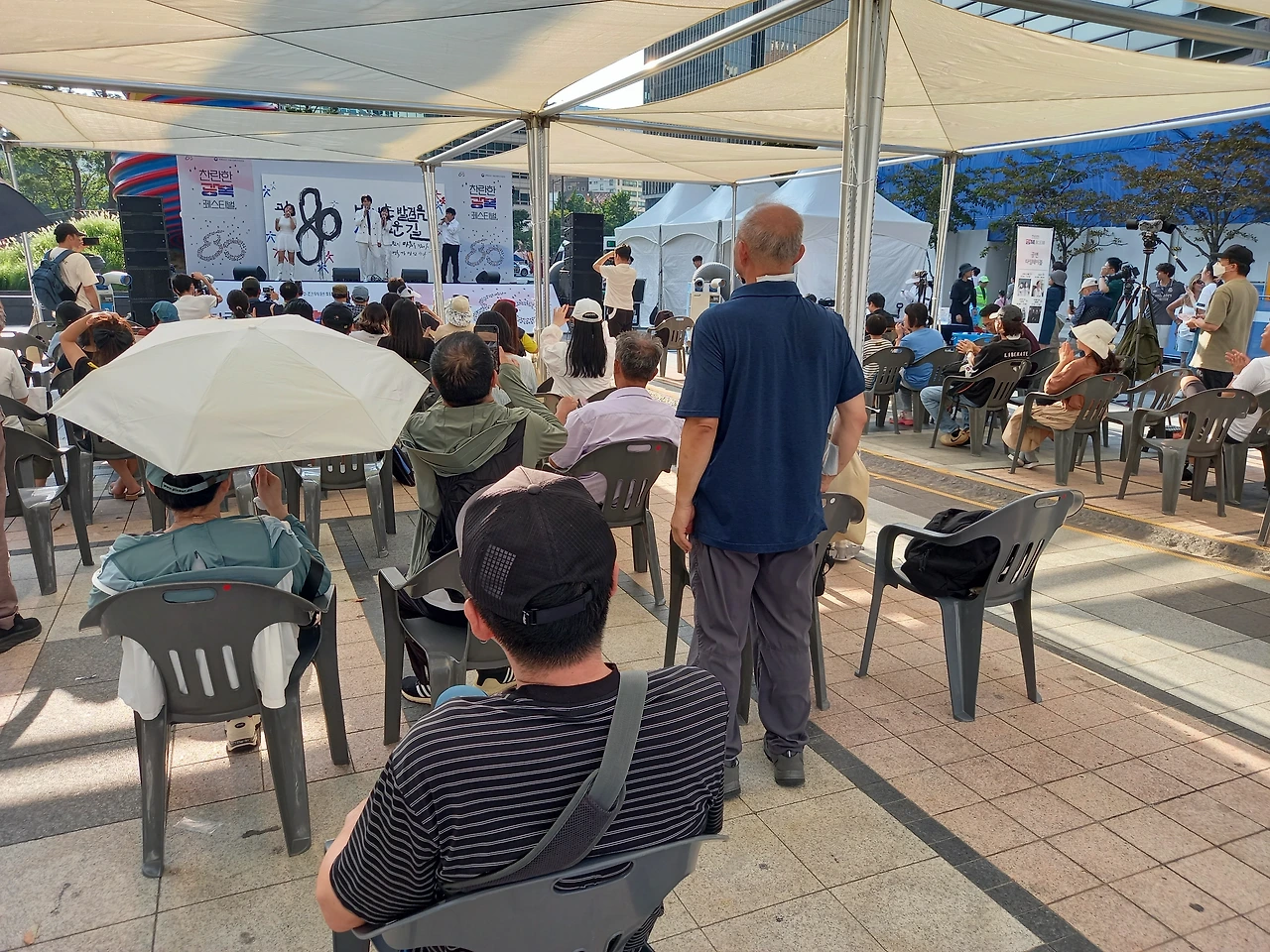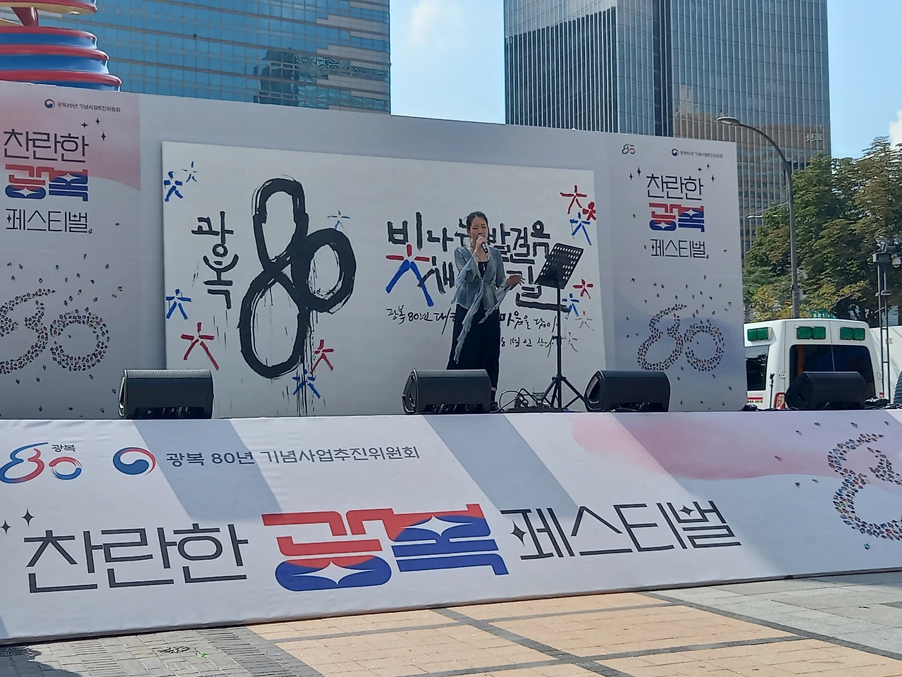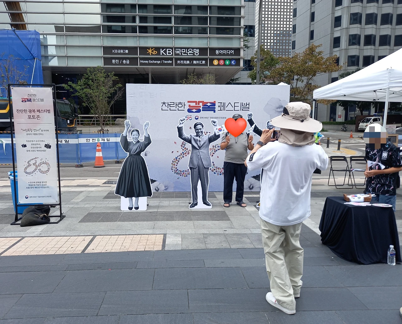 더군다나 그 장소가 광화문인근의 서울 청계광장 아니겠습니까? 우리나라의 대표 축제나 행사이기도 한 이곳은 많은 사람들이 지나가는 곳, 즉 이 행사를 모르셨던 분들도 인근 거리를 지나가다 혹은 그저 청계천을 찾았다가 자연스럽게 행사에 참여가 가능한 곳이어서 광복 80년 기념행사 장소로써 안성맞춤이었습니다.
