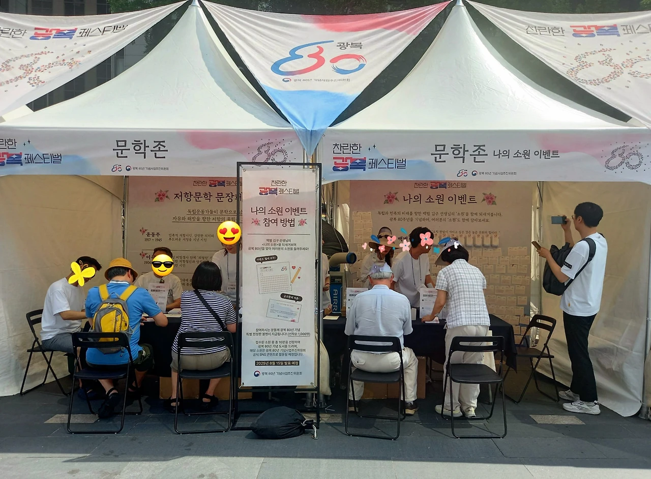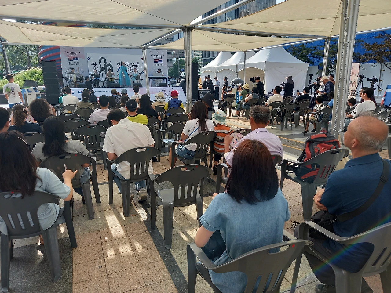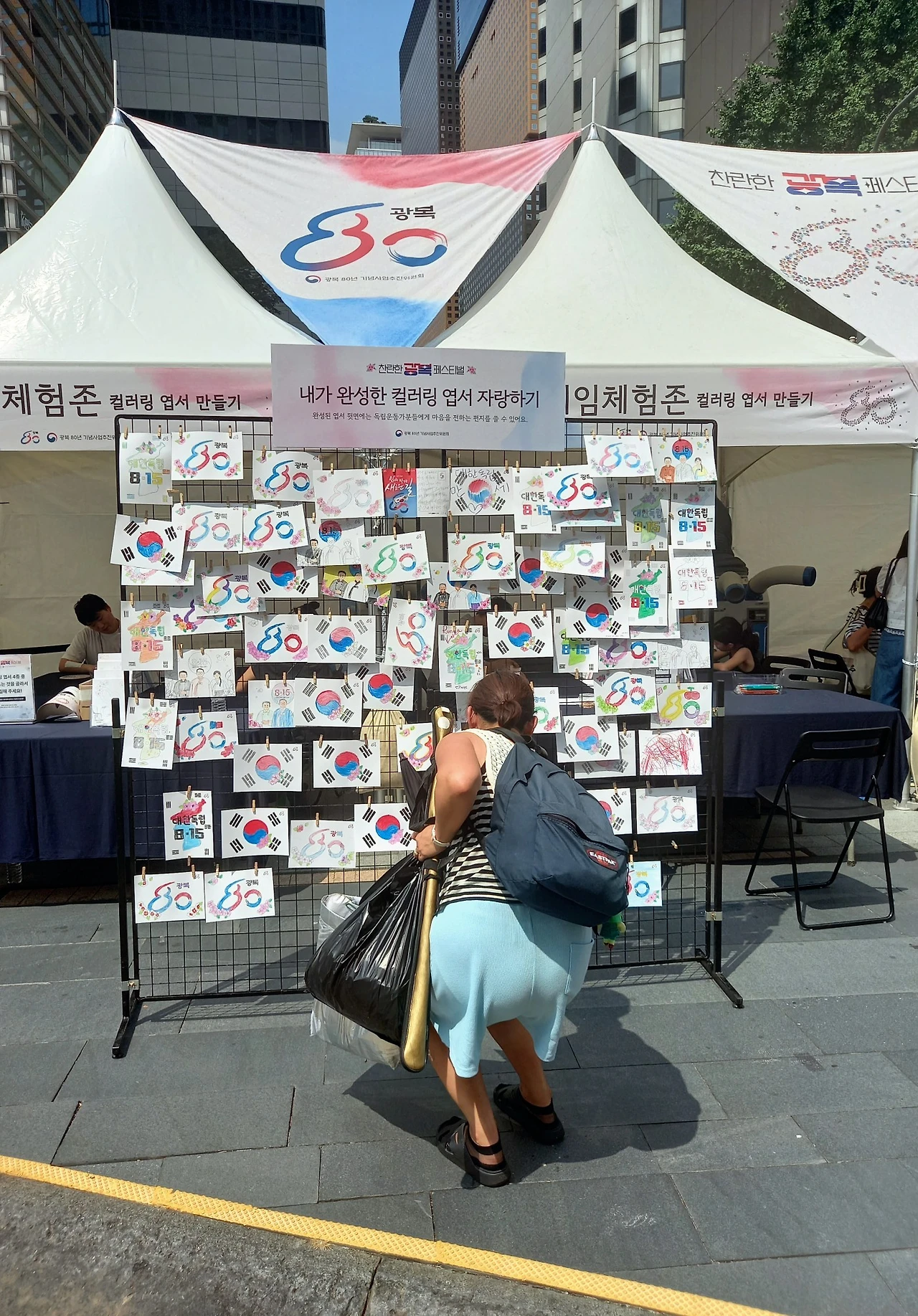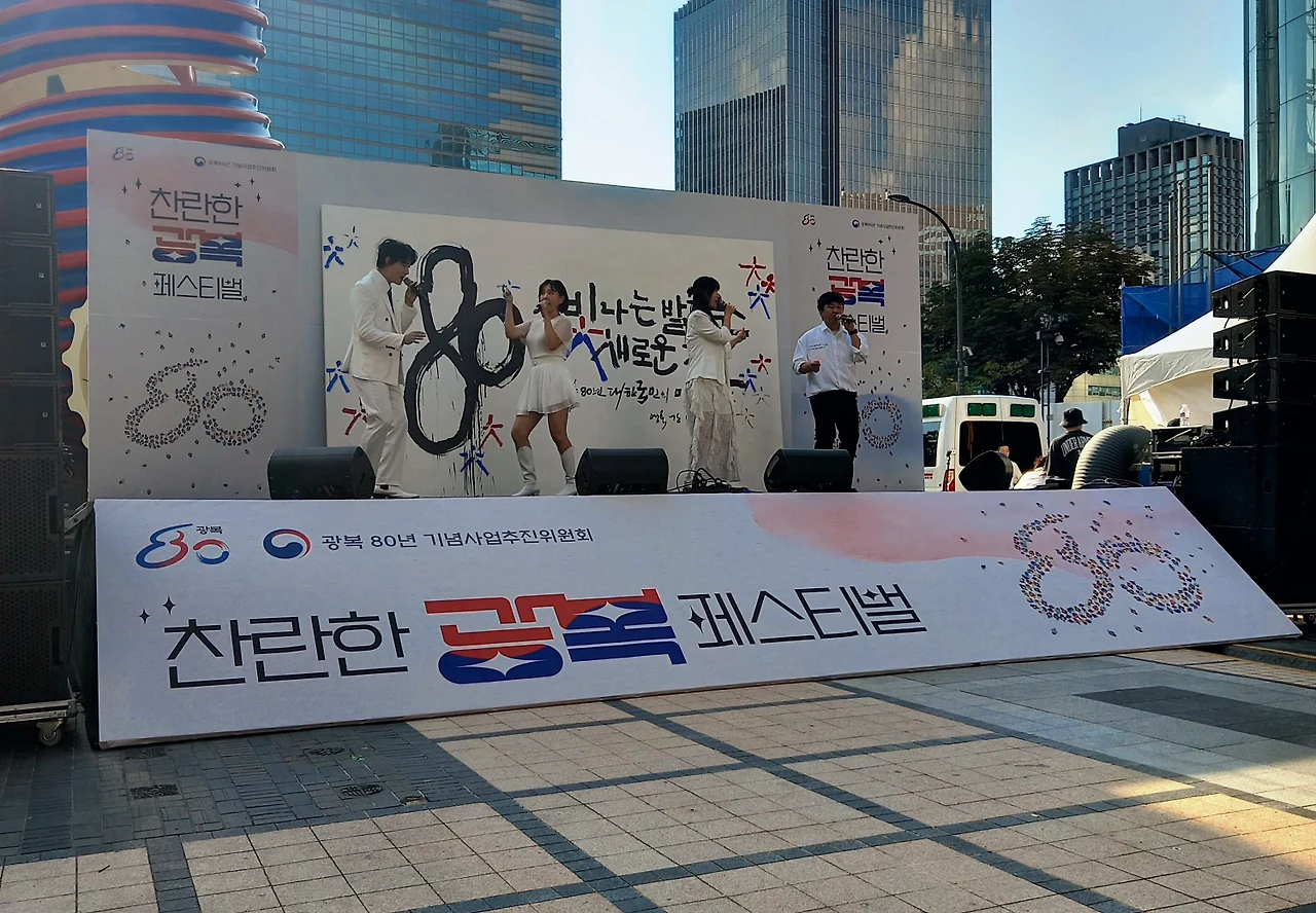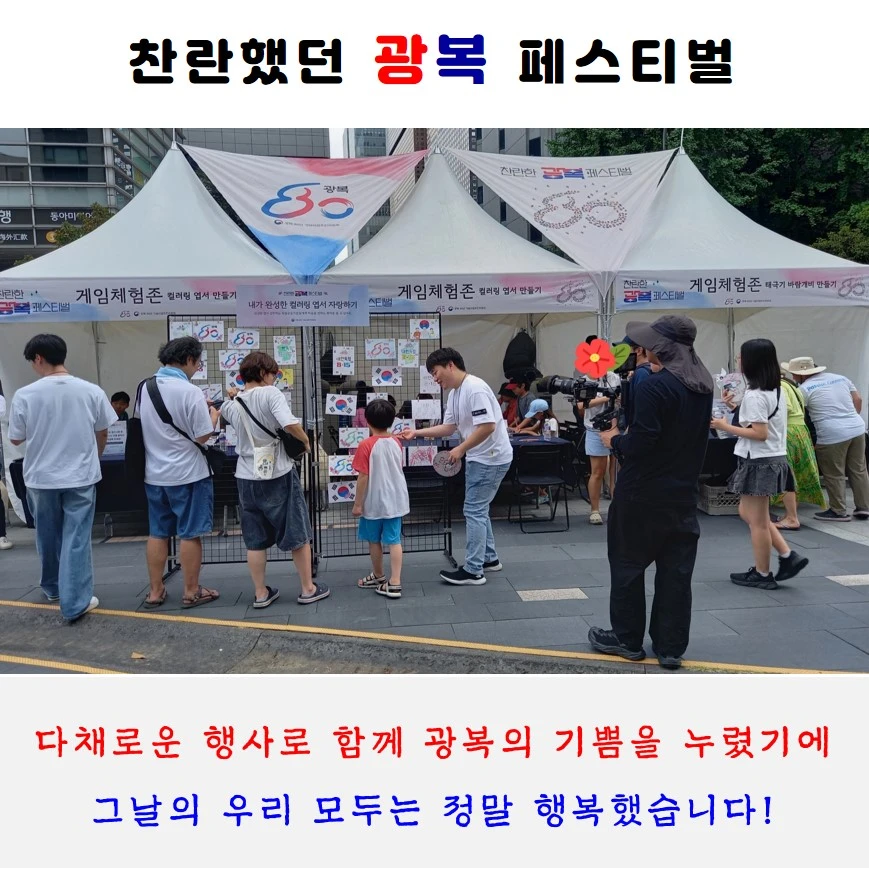 더군다나 그 장소가 광화문인근의 서울 청계광장 아니겠습니까? 우리나라의 대표 축제나 행사이기도 한 이곳은 많은 사람들이 지나가는 곳, 즉 이 행사를 모르셨던 분들도 인근 거리를 지나가다 혹은 그저 청계천을 찾았다가 자연스럽게 행사에 참여가 가능한 곳이어서 광복 80년 기념행사 장소로써 안성맞춤이었습니다.