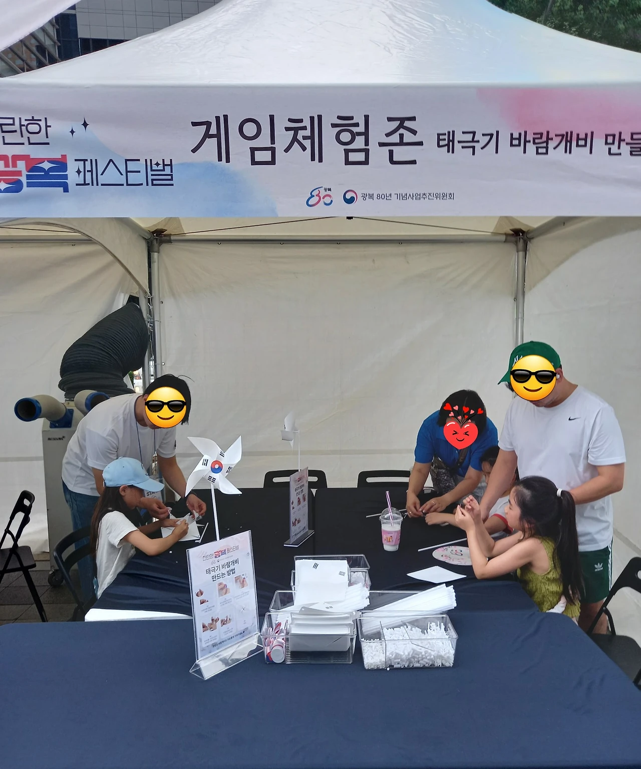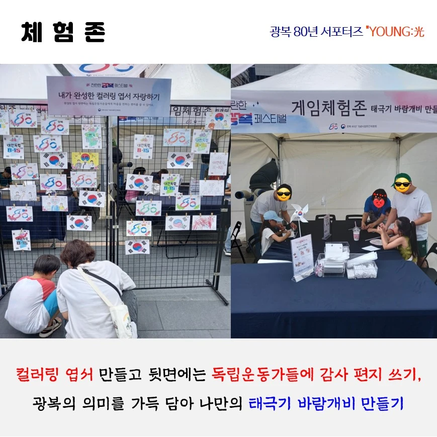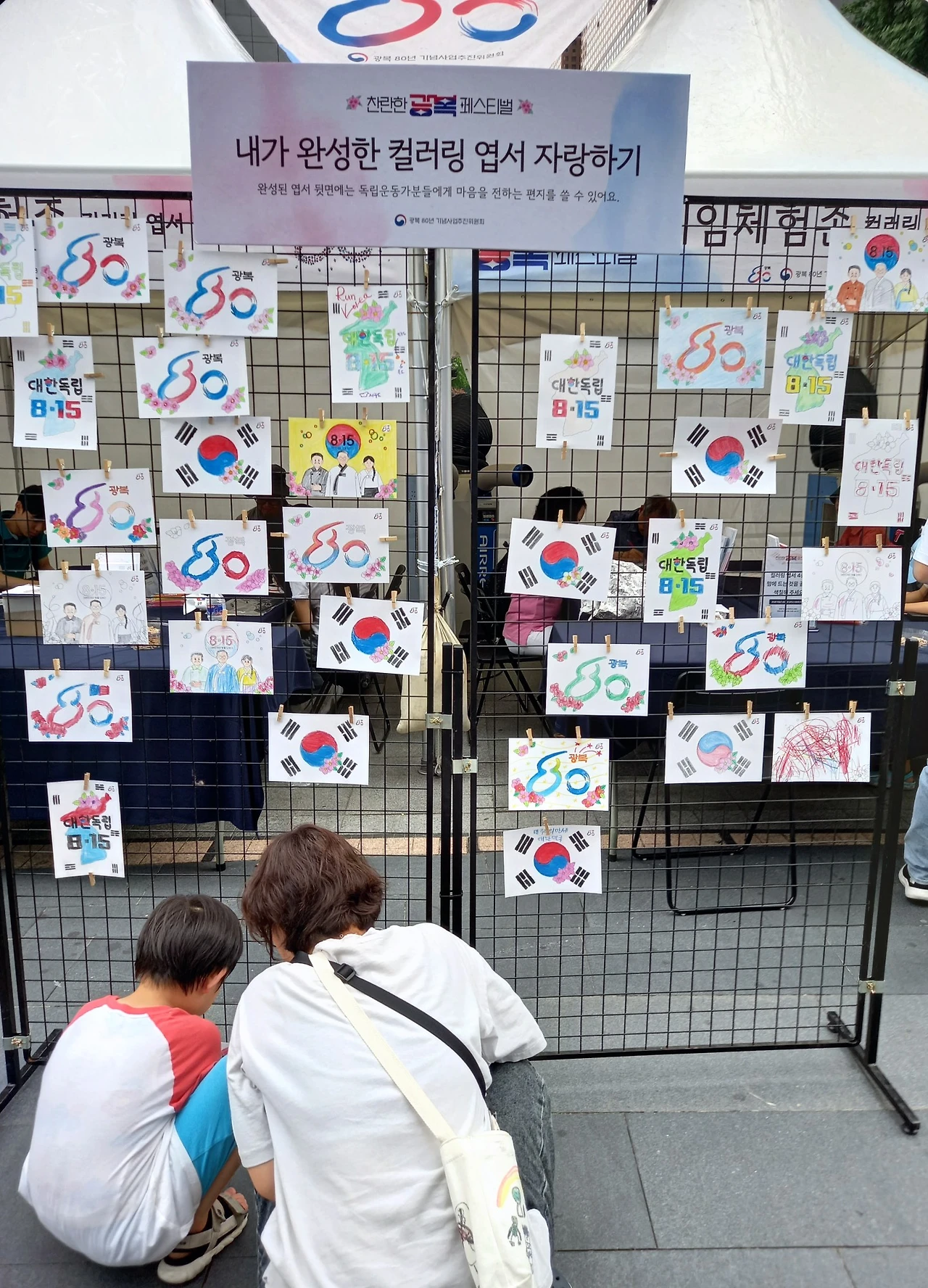 8.15초 게임존 오른편에는 특히 어린이와 어른이들을 사로잡았던 부스가 있었는데요. 컬러링 엽서와 태극기 바람개비 만들기 프로그램이었습니다.