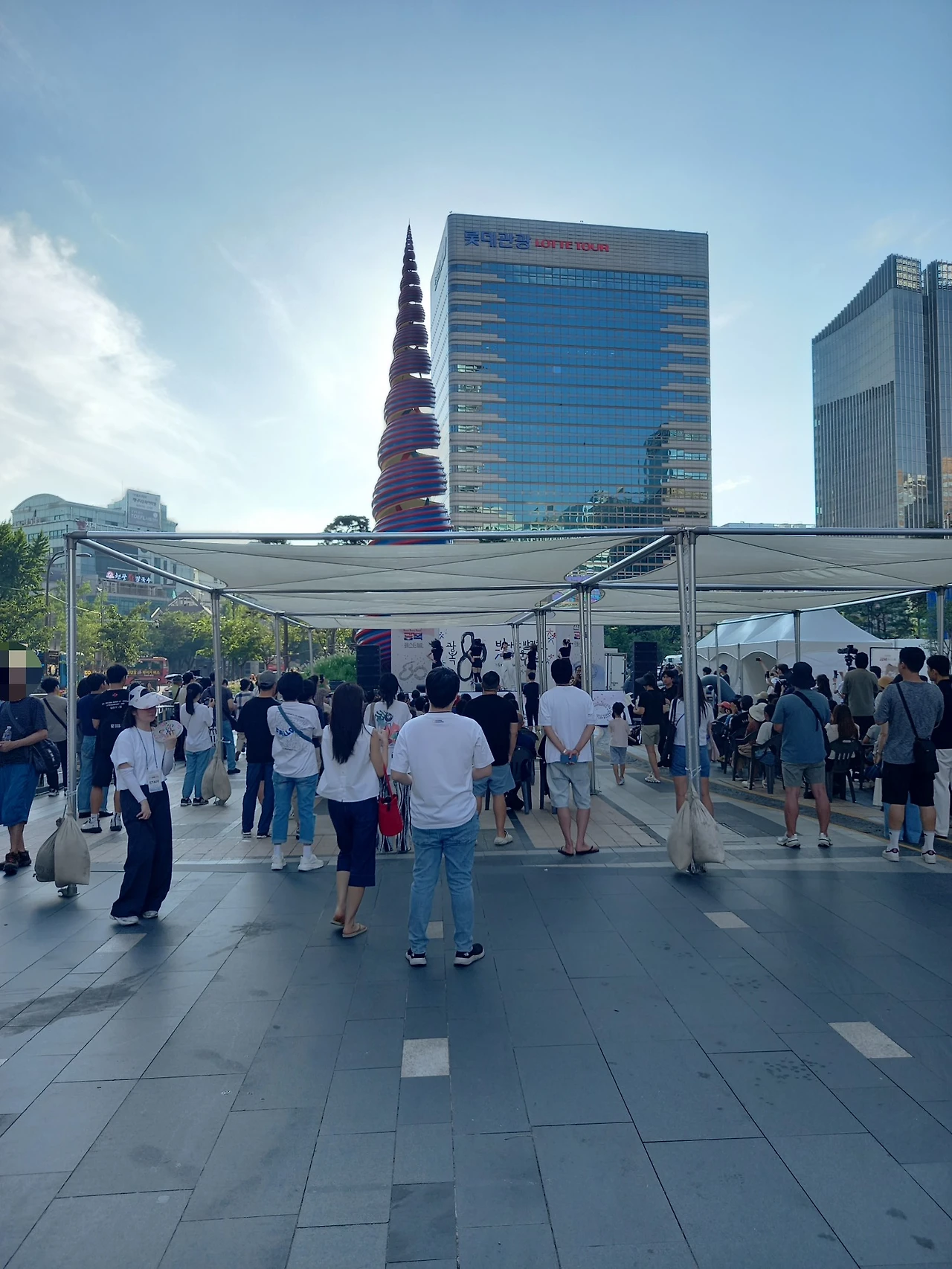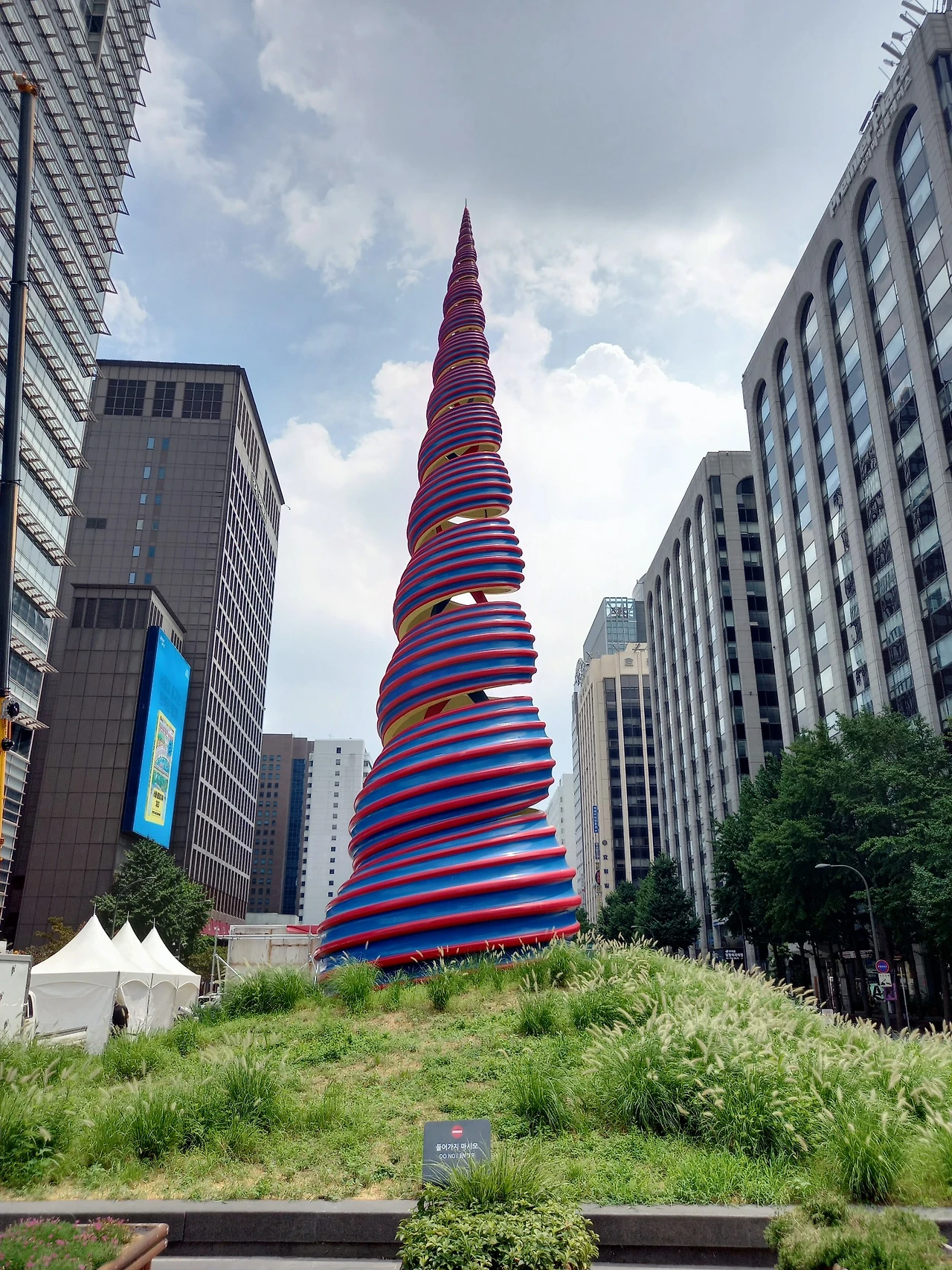 지상으로 올라와 잠깐 걸었더니 서울 청계광장의 상징, “스프링” 조형물이 저를 맞이했어요. 조형물을 처음에 설치할 때는 이런저런 이야기가 나오지만은 결국에는 청계광장의 랜드마크로서 많은 분들이 이곳에서 사진을 찍지 않겠습니까?