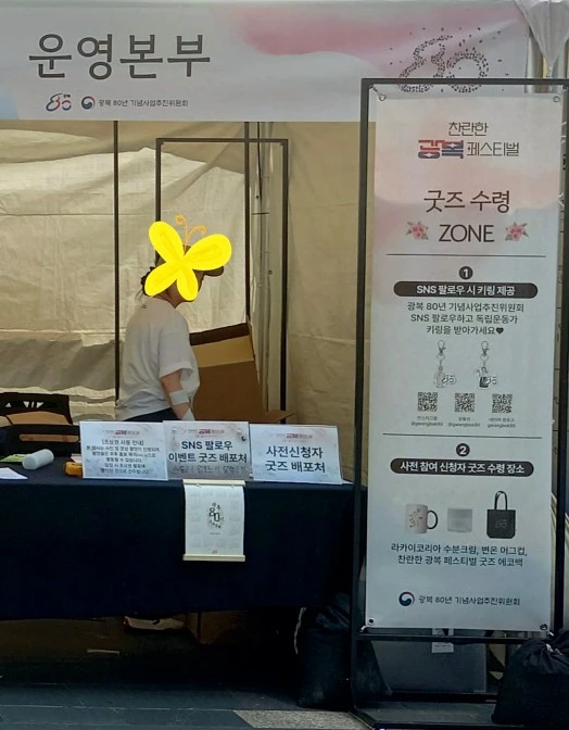 발 빠르게 사전 행사 참여를 신청하신 분들은 수분크림과 머그컵 그리고 광복 페스티벌 굿즈 에코백도 이곳에서 수령받았습니다.