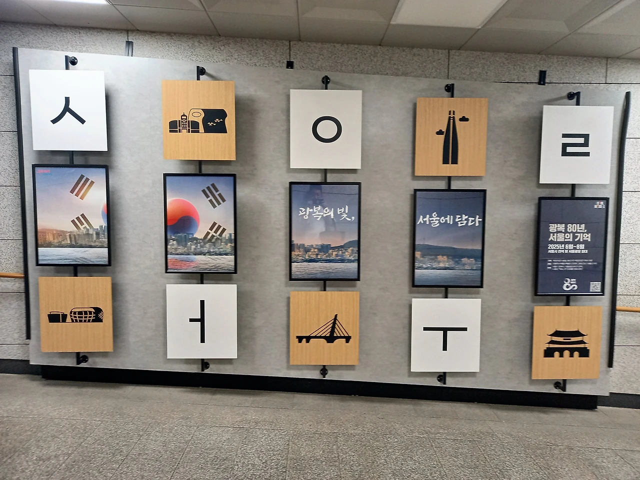 이날 프로그램 중 경품이 선착순으로 제한된 행사가 있어 저는 시작시간인 정오에 맞춰 현장을 찾기로 했습니다. 지하철 1호선 시청역에서 내려 광장 쪽으로 나가는 지하 통로에서 서울시의 광복절 기념 게시물도 보이더군요. 이제 광복 80주년이 코앞으로 다가왔다는 것이 더욱 실감이 났습니다.