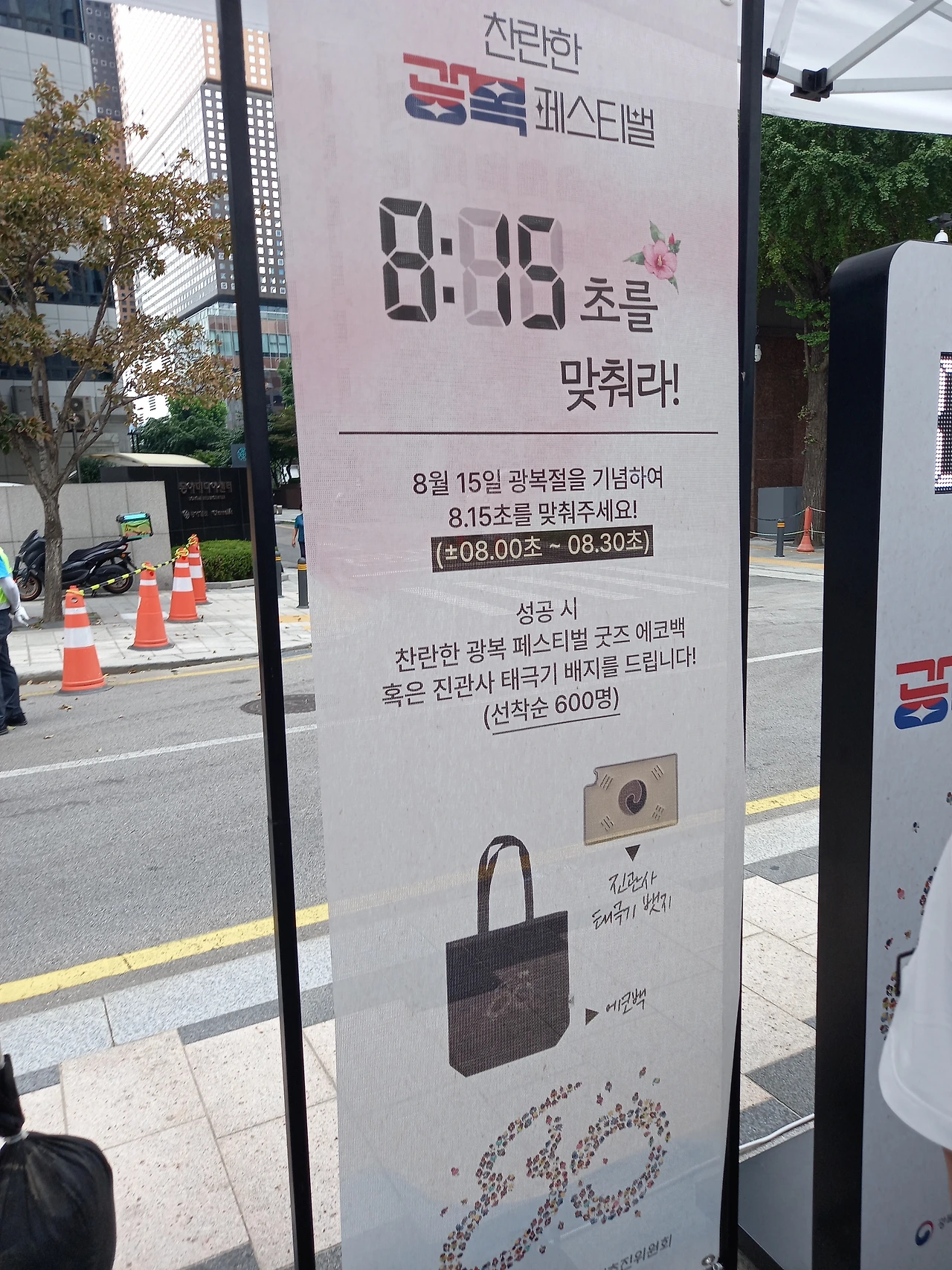 돌이켜보면 혼자가 아니라 많은 국민들과 함께 광복의 기쁨을 나눌 수 있었던 것이 저를 자리에서 뜨지 못하게 했던 것 아닌가 싶네요. 덕분에 뜻깊은 행사 오래도록 참여하며 많은 굿즈를 받았고, 좋은 공연 즐길 수 있어 행복했던 “찬란한 광복 페스티벌” 현장이었습니다. 오래도록 제 마음속에 좋은, 의미 있는 추억으로 자리 잡을 것입니다.