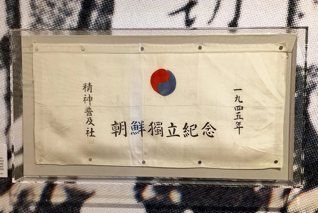 가장 먼저 본 전시물 “독립기념 태극 그림”은 1945년 광복 직후 제작된 조선독립기념 태극기로, 중앙의 태극문양과 그 아래에는 ‘조선독립기념(朝鮮獨立紀念)’, 좌우의 한자는 우측은 ‘일구사오년’ 좌측은 제작 주체로 보이는 ‘정신보급사’가 적혀 있었습니다. 독립기념 태극기 처음 봤는데, 가슴이 뭉클해지더군요. 많은 글귀나 그림 없이 딱 핵심만 표시돼 여백의 미가 돋보여서 더 그랬던 것 같습니다. 하긴, 기쁨을 만끽하기에 바쁜 마당에 미사여구나 수식어는 별로 중요하지 않았을 것입니다. 중요한 건 독립했다는 사실일 뿐.