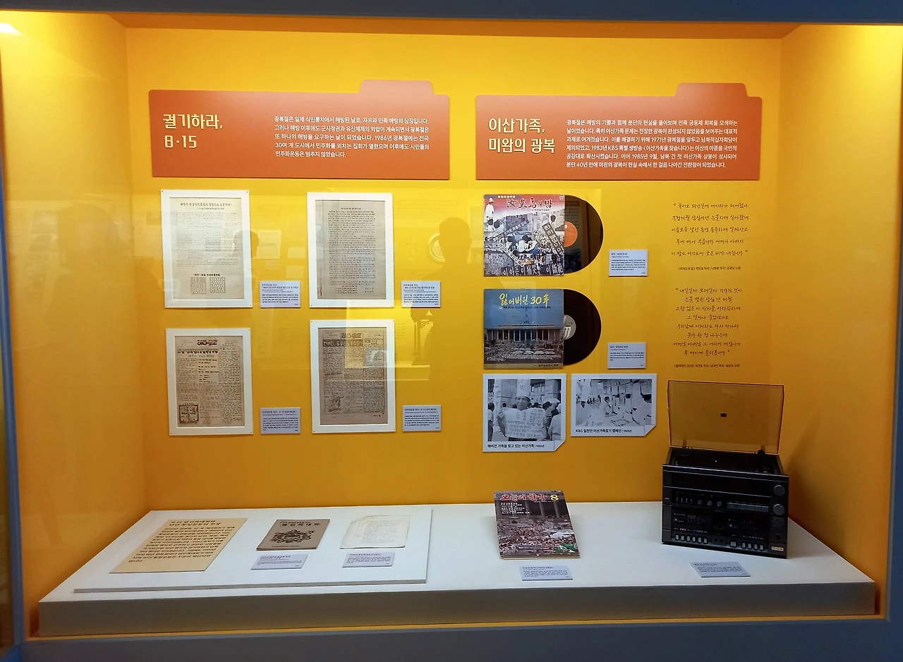 이외에도 1945년 9월 3일 대한민국 임시정부 국무위원회 주석 김구의 이름으로 배포된 “국내외 동포에게 고함“이라는 제목의 인쇄물과 해방 당시의 분위기를 담아낸 사진과 기사가 수록된 잡지 ”국제보도 창간호“, 히로히토 일왕의 종전 조사가 실린 ”경성일보 - 1945년 8월 16일 호“ 등 귀한 자료들을 볼 수 있어