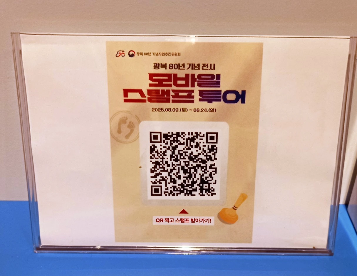 모바일로 스탬프 찍기 하나를 완성, 한 주 내 80주년 기념 전시 보고 두 개의 스탬프도 더 찍어 최종 완성과 더불어 기념품 굿즈도 받아보려 합니다. 스탬프 투어가 아니라도 광복 80주년 기념 전시들 하나같이 유익하고 재미있으니 겸사겸사 방문해 보시기 바랍니다.
