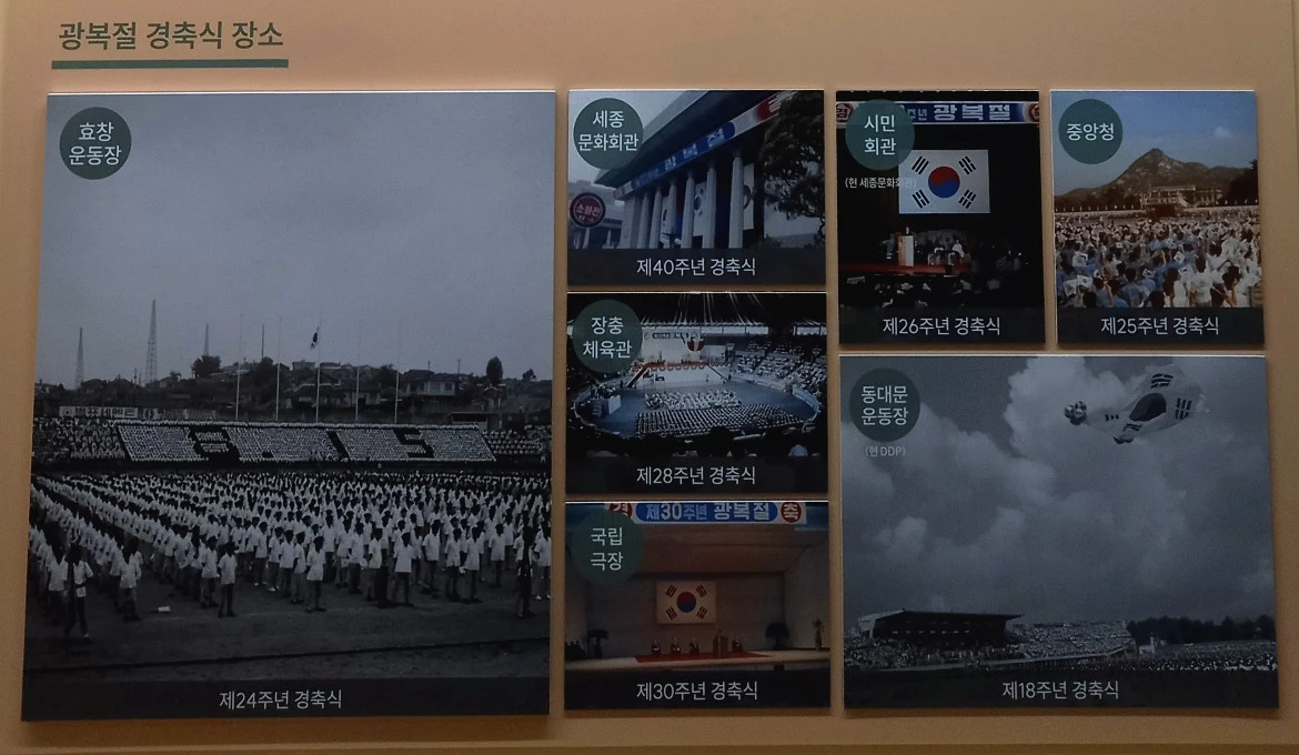 아무쪼록 국가기념일로 형식 면에서는 큰 규모의 행사로, 동대문운동장∙효창운동장∙시민회관∙중앙청∙장충체육관∙국립극장 등 다양한 장소에서 열려왔는데요. 제40주년 장소인 세종문화회관에서 근래에는 주로 열려왔는데, 올해 제80주년 경축식도 같은 곳에서 개최된다는 점에서 남다른 의미로 다가왔습니다. 40년 전에도 그리고 40년 후에도 같은 장소에서 광복절 경축식이 열려 온 국민이 기쁨을 함께 누린다는 점에서 말이죠.