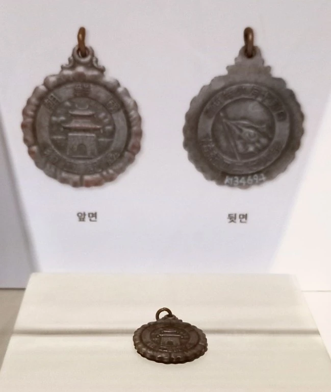 마찬가지로 1945년 제작된 “독립기념 메달“ 앞면의 가운데 원 안에는 제가 느끼기에 숭례문을 닮은 문의 형상이 위로는 조선국(朝鮮國), 아래로는 독립기념(獨立紀念)이, 뒷면에는 제작한 날짜기 표기되어 있었습니다.