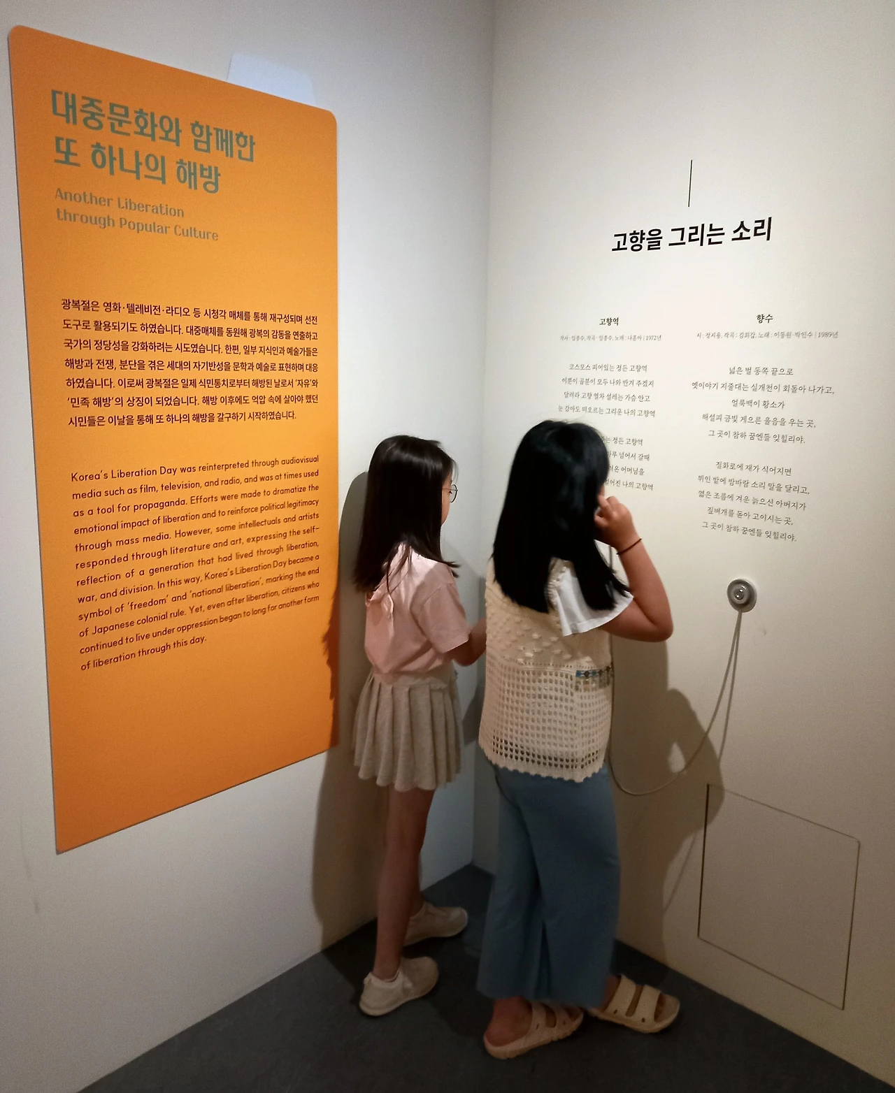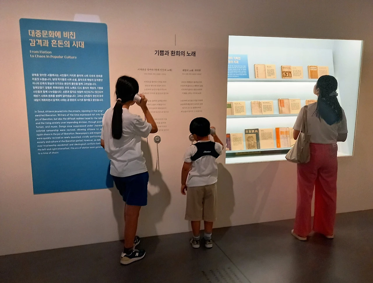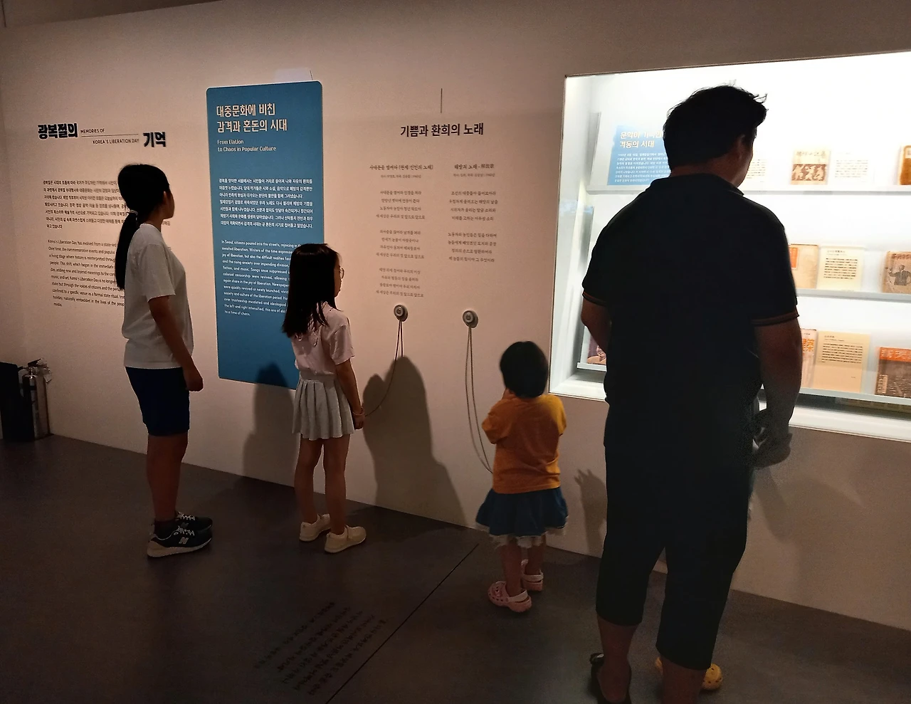 1945년의 기쁨과 환희의 노래 “사대문을 열어라(원제:인민의 노래)”와 “해방의 노래”는 직접 들어볼 수 있게 구성되었고, 어린이들에게 인기 만점이었습니다. 진짜로 줄을 서서 들을 정도였으니까요. 어린이들에게 늘 양보하는 저는 다른 전시물을 보다 아이들이 없을 때 잠깐 들어봤는데, 옛 노래의 음성에서 한 구절 한 구절에서 기쁨이 전해짐을 느낄 수 있었습니다.