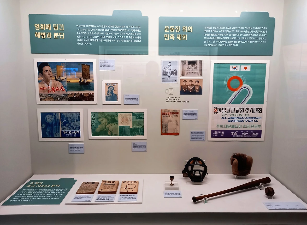 6∙25 전쟁 이후 광복절은 단순한 기념일을 넘어, 국가 정체성을 새롭게 구축하는 중요한 계기로 자리 잡았습니다. 이러한 흐름 속에서 1950년대 문학∙음악∙영화 등은 광복의 감격과 전쟁의 참상이라는 이중의 역사 인식을 담아냈습니다. 문학은 해방과 분단 사이의 역사적 긴장을 예술적으로 승화시켰으며 대중음악은 전쟁과 실향의 감정을 대변하는 창구가 되었습니다. 영화에서는 남북 대립을 주제로 하는 작품들이 다수 제작되어 이념적 메시지를 전달하였습니다. 또한 재일교포 학생 야구단을 초청해 모국 방문 친선 경기를 여는 등 민족적 유대를 강화하려는 노력도 이어졌습니다.