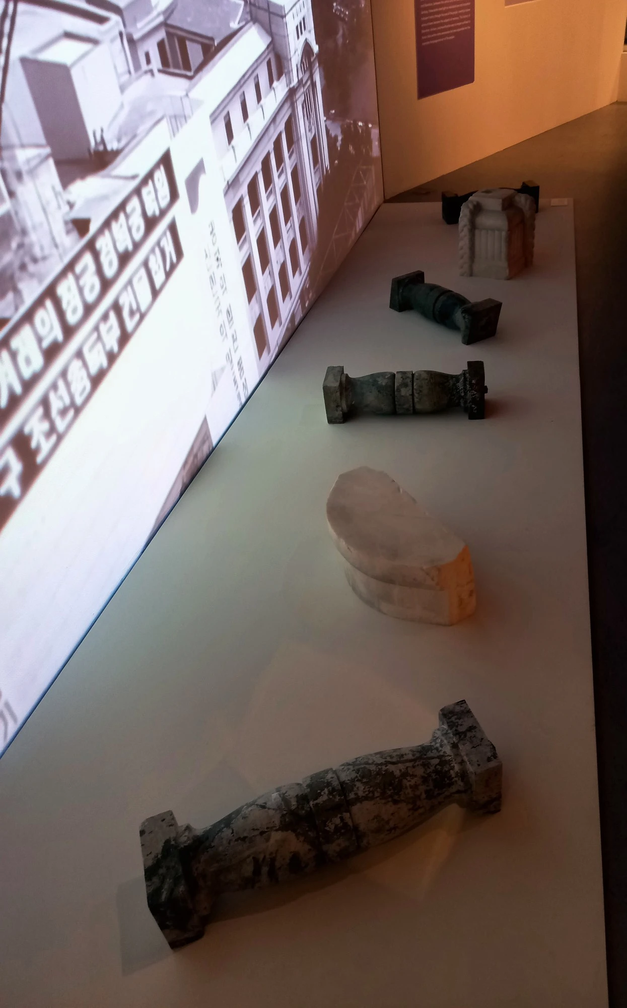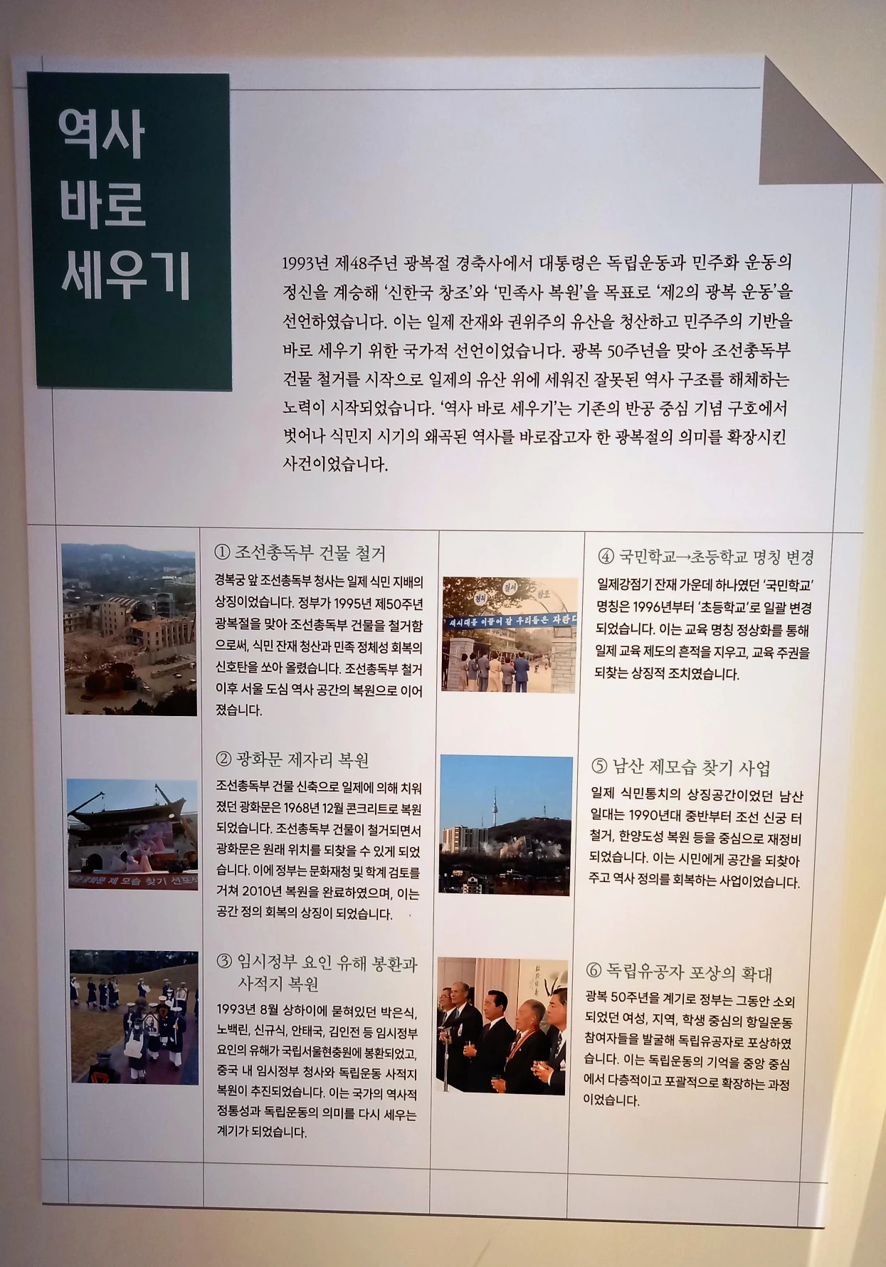 이 공간 들어서기 전 좌측 정면에는 대형 프로젝트로 “조선총독부” 철거 관련 영상과 바닥에 그 철거 부재가 전시돼 있었습니다. 역시나 광복 50주년을 맞아 행해진 역사 바로 세우기 프로젝트 하나였는데요.