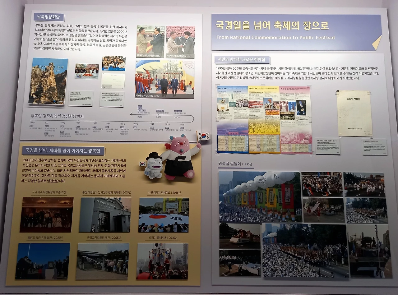 대통령 경축사에는 국민 통합과 민주주의의 가치가 강조되었고, 경축식의 부대행사도 시민들이 쉽게 접근할 수 있는 광장 중심으로 변화하였습니다. 이후 광복절은 시민이 함께 참여하고 만들어 가는 축제의 장으로 바뀌어 갔습니다.