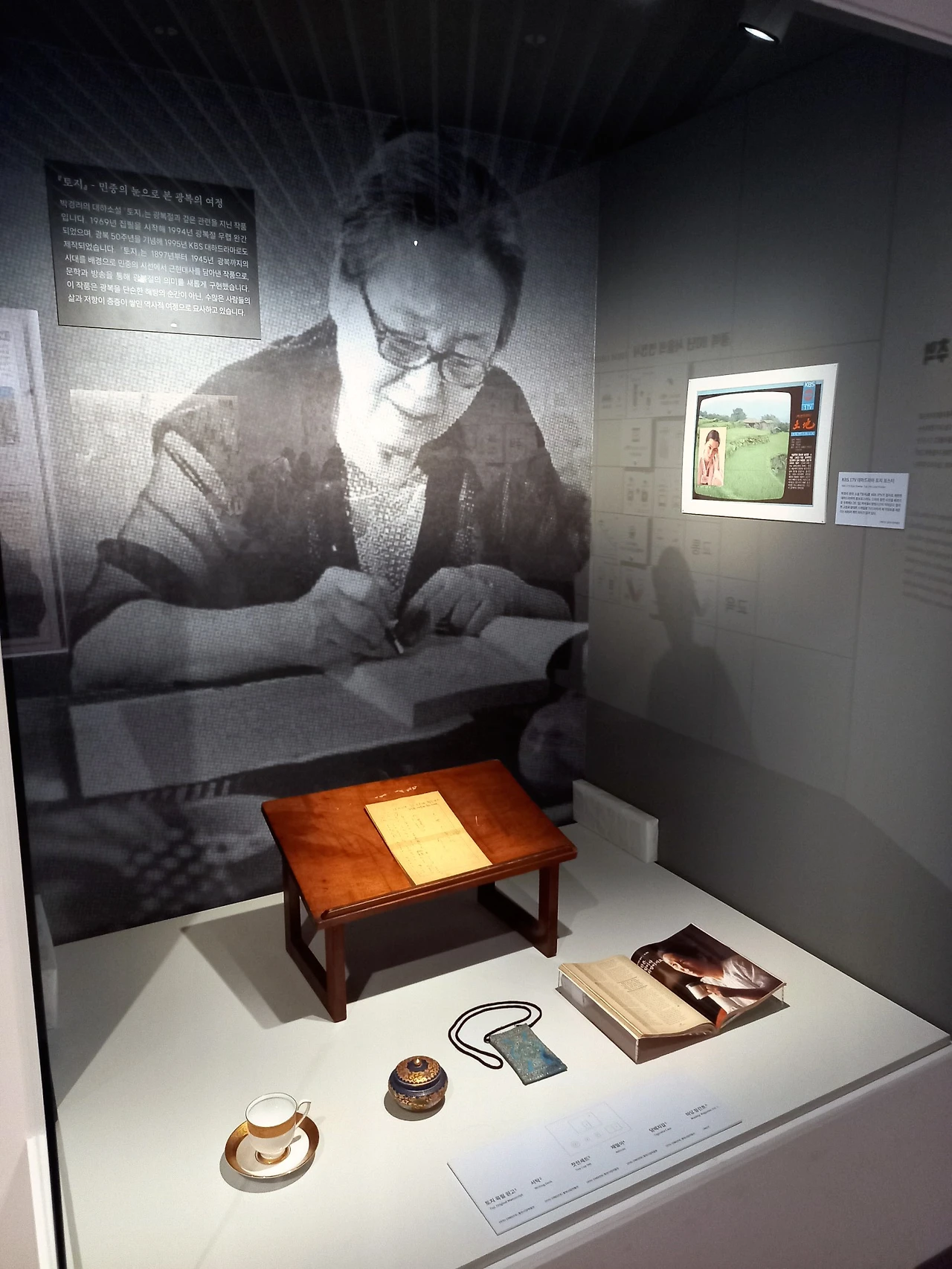 한국 대표 소설가 박경리의 대하소설 ‘토지’에 관한 전시가 있었는데요. 이 소설이 광복절과 깊은 관련을 지닌 작품이어서 역시나 50주년 기념으로 1995년 KBS 대하드라마로도 방영되었다 합니다. 작품은 광복을 단순한 해방의 순간이 아닌 수많은 사람들의 삶과 저항이 층층이 쌓인 역사적 여정으로 묘사하고 있다고 전시물 문구에 나와있었습니다.