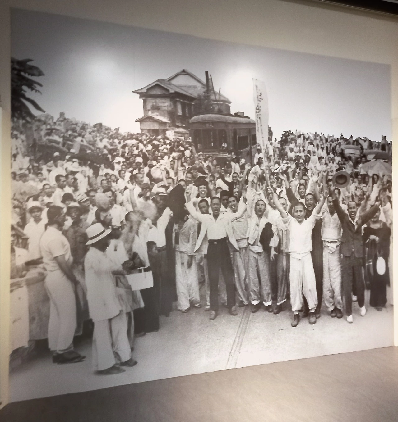 전시관에 게시된, 1945년 해방 후 기뻐하는 국민들 모습