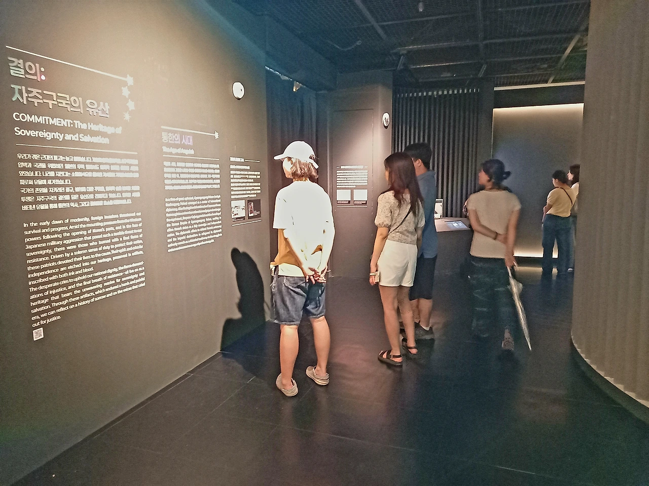 1부 공간은 이렇게 끝나는데요. 제가 위와 같이 길고 상세하게 설명한 이유는 물론 위 전시물 중 중요하지 않은 유물이 하나도 없습니다만, 특히 1부에서 이범진의 미사일록, 민영환 유서(명함), 항일의병 관련 격문, 안중근 의사의 유묵 녹죽과 일통청화공 등 유묵들을 비롯 중요 유물들이 많았기 때문입니다. 단순 양쪽으로도 많았고, 2부 이후를 설명하기 위해서는 바로 1부의 이야기를 잘 알고 가야 하기도 하고요.