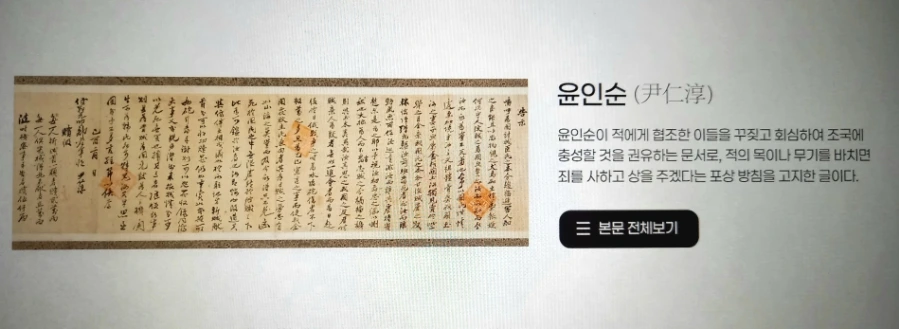 특히 인상 깊었던 격문은 이날 강연에서도 들은 내용으로 의병장 윤인순의 격문이었는데요. 전반부에서 적에게 협조한 이들을 강하게 꾸짖은 다음, 후반부에는 적의 목이나 무기를 바치면 죄를 사하고 상을 주겠다고 고지한 글입니다. 강연자 말을 빌리자면 "채찍과 당근"을 모두 담았다고 할 수 있겠습니다. 그 기개가 정말 대단하지 않습니까? 우리 역사에서 의병은 늘 국가 위기 때 등장해 나라를 위해 싸우곤 했습니다. 이 격문 유물이 있었기에 정미의병 의병장들의 위대함을 더 잘 알 수 있었네요. 유물이 앞으로도 많은 국민들에게 널리 널리 알려졌으면 하는 마음이 들었습니다.