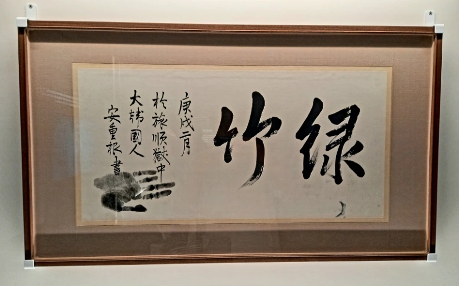항일의병 격문 공간을 지나니, 드디어 등장했습니다. 국가 보물로 지정된 안중근 의사의 유묵 유물들입니다.