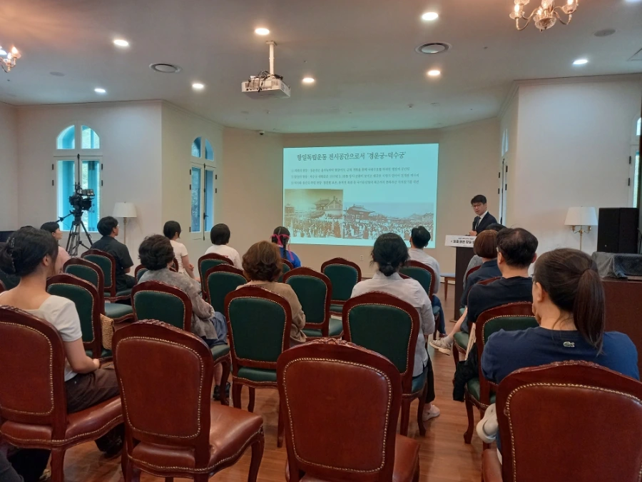 이곳 덕수궁은 을사늑약의 현장이자 군제 개혁을 통해 국권수호를 하려던 명암의 공간으로 격변의 역사를 상징하는 현장, 덕수궁 대한문은 3.1 만세 운동 당시 많은 군중이 모여 시위를 벌인 함성의 현장, 정관헌의 보전과 돈덕전의 복원 등 국가유산청의 최근까지 문화유산 자리 찾기를 대변하는 곳이어서 이곳에서 전시가 개최되게 되었다고 설명하셨고요.