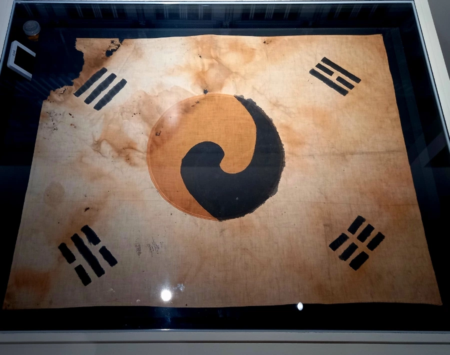대망의 마지막 5부에서는 아마 여러분들 중에서도 보신 적이 많을 것이라 생각되는 '한국광복군 서명문 태극기' 등 여러 태극기를 볼 수 있는데요. 가장 소개해 드리고 싶은 딱 하나의 유물은 바로 이것입니다.
