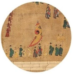 (좌) 태극기가 그려진 신축진찬도 병풍 | 1901 | 국립고궁박물관 / (우) 평풍 속 태극기의 모습(출처 : 대한민국역사박물관 누리집)