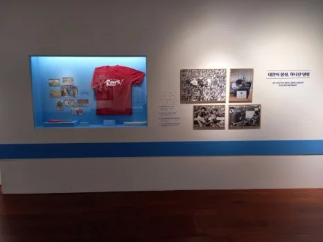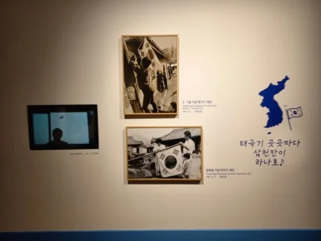 사진을 보며 당시 고등학생이던 저도 대한민국이 무려 월드컵 4강에 진출했던 꿈같은 기억이 떠올라 마음이 벅찼거든요. 우리들의 추억을 떠올리게 하는 사진 전시였습니다. 마지막 전시 공간은 이처럼 우리들의 생활 속에서 늘 함께 해 온 태극기의 모습이 펼쳐졌고, 관람객들은 각자의 좋았던 옛 기억을 되새길 수 있는 훈훈함 마음을 들게 해 주는 공간이었습니다.