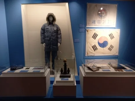 마지막 태극기는 남극의 대한민국 세종기지에 게양된 "세종기지 태극기"입니다. 극한의 추위를 함께한 만큼 색이 다소 바래 있었지만 그래도 꿋꿋하게 견디고 이겨낸 느낌이 물씬 들었습니다. 이처럼 분야는 다르지만 모두 조국을 빛내고 조국을 위해 헌신한 분들과 함께한 태극기였기에 보는 동안 뭉클한 마음이 떠나지 않았습니다.