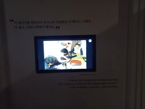 "이 태극기를 만들어서 우리나라 독립하고 다 한다고 그래서 아 좋다. 기쁘다 하면서 했어요" - 노영재 여사 -