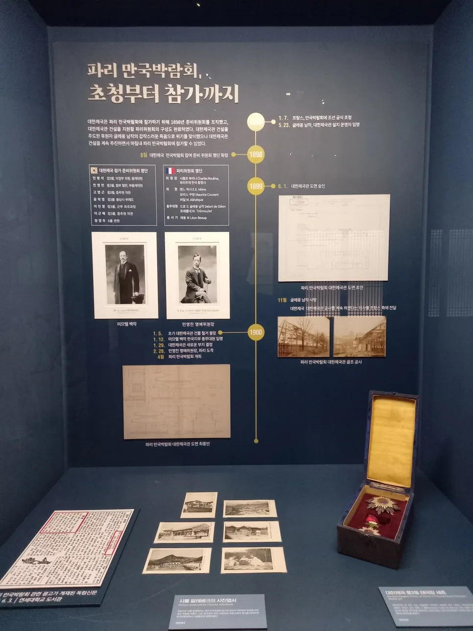 1896년 1월 7일, 조선은 프랑스로부터 파리 만국박람회 참여를 공식 초청받았습니다. 당시 만국박람회는 각국이 자국의 산업과 문화를 세계에 알릴 수 있는 국제무대였습니다. 대한제국은 1900년 개최된 파리 만국박람회에 국제사회 속 한 일원으로 당당히 참여했습니다. 우리의 문화적 역량과 정체성을 ‘대한(Corée)’이라는 이름으로 세계에 알리고자 했습니다. 파리만국박람회 참가는 열강 사이에서 어깨를 나란히 하고자 한 외교적 노력을 보여주는 동시에 자주 국가로서의 의지를 세계에 알린 뜻깊은 발걸음이었습니다.