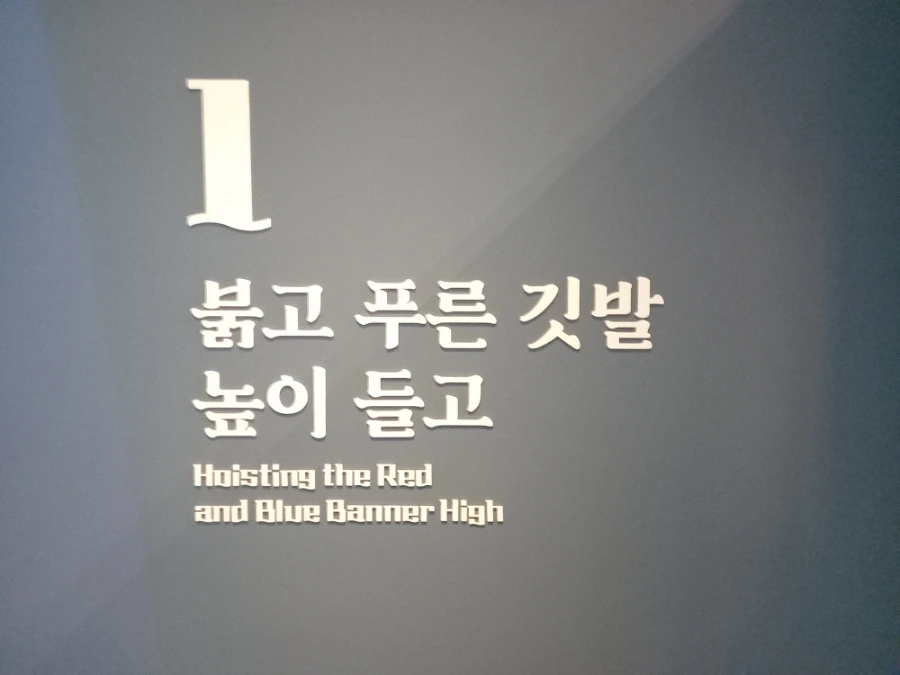 미디어 전시로 시작된 첫 번째 공간에서는 바로 태극기들이 즐비하게 등장한 것이 아닌, 태극기 관련 서사 등에 관한 내용이 펼쳐졌습니다. 그러니까 본격적인 태극기 전시 전의 빌드업의 역할을 한다고 볼 수 있겠네요.
