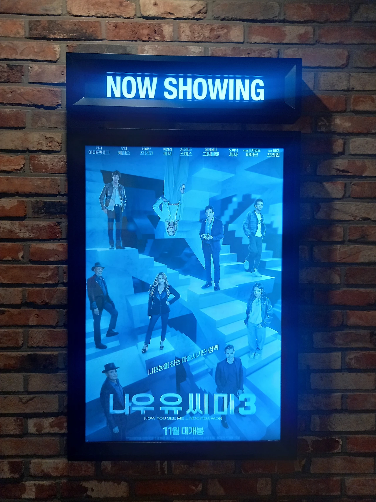 먼저 <나우 유 씨 미 3>의 개봉 1주가 조금 지난 시점에 기대감을 안고 오랜만에 평일 밤 영화관에 방문했다.
