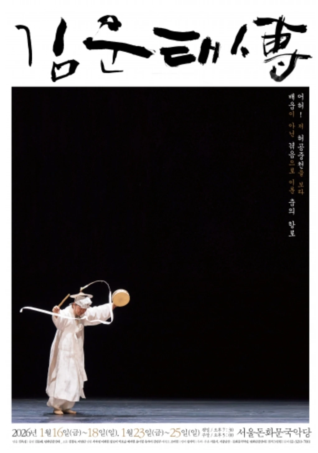 서울돈화문국악당에서는 어제부터 <김운태傳>전이 개시, 오는 25일까지 열립니다. 저는 2일 차인 오늘(17일 토요일 17시) 공연을 보고 왔습니다.