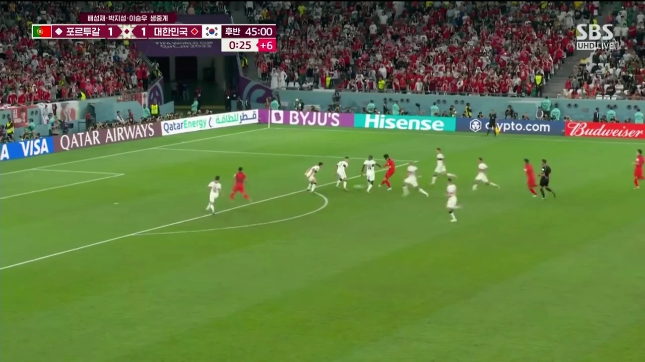 포르투갈과의 그 드라마틱 한 골 장면 역시, 손 선수가 공을 잡으니 대여섯 명이 일제히 달려들었고 상대적으로 수비 견제를 적게 받은 황희찬 선수가 골을 넣을 수 있었다.