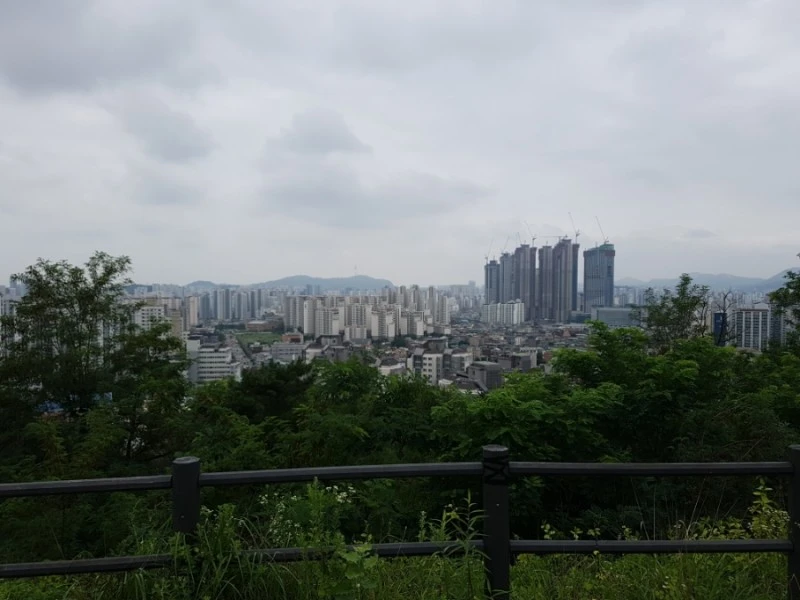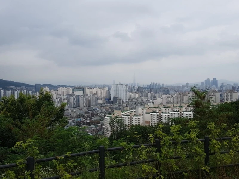 5코스 종착지“배봉산 정상”의 높이는 약 108m. 힘들지 않게 정상에 오를 수 있었다. 일반적으로 내게 익숙했던 산의 정상과는 확연히 다른 모습으로, 동산의 느낌이랄까? 그리 높지는 않았더라도 서울의 사방팔방이 보였다. 근거리 및 원거리의 산들, 남산타워와 제2롯데월드타워 및 도심 풍경을 만끽할 수 있었다. 높이는 낮은데 보이는 광경은 빼어난, 가성비 최고의 산이다.