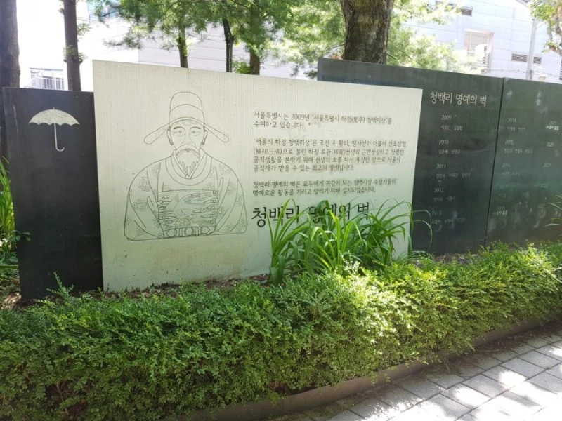 그리고 그렇게 다녔는데도 인지하지 못했던 곳. 동대문도서관 앞 공원에는 세종 시대 대표 청백리, 하정 유관 선생의 집인 우산각이라는 명칭을 딴 “우산각 공원”이 있었다. 서울시에서는 2009년부터 하정 청백리상을 수여하고 있다고 해설사께서 설명해 주었다. 공원에는 그의 청렴한 일화를 담은 이야기 게시판도 있었다. 공공기관 직원으로서 필자도 하정 유관 선생의 그 청렴한 삶을 본받아 청렴하게 살도록 노력하겠다.