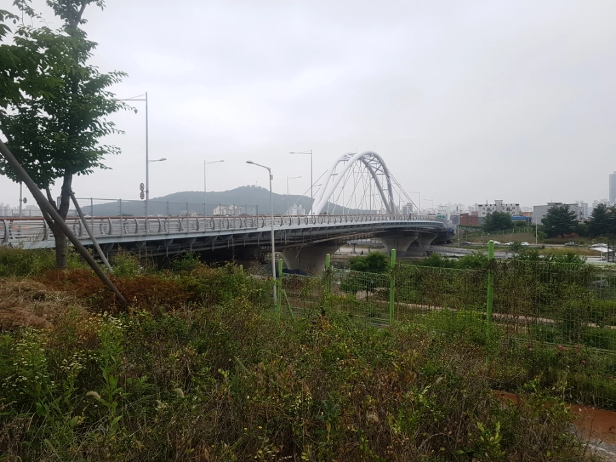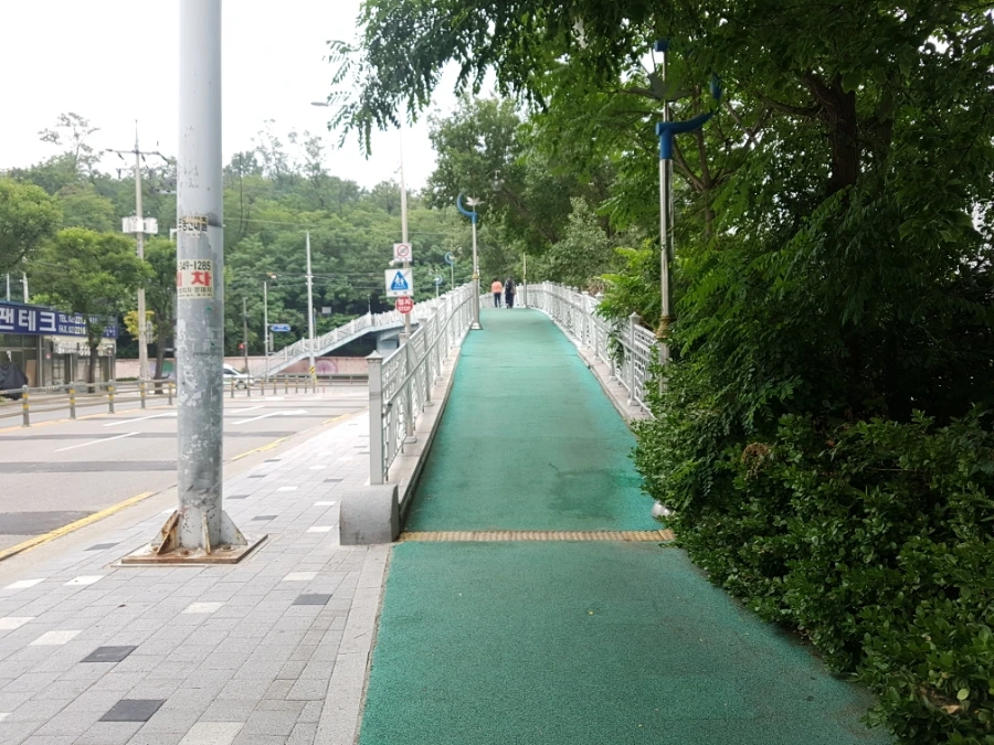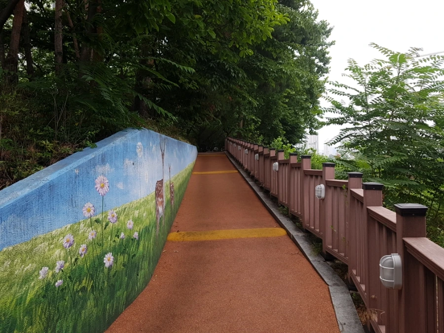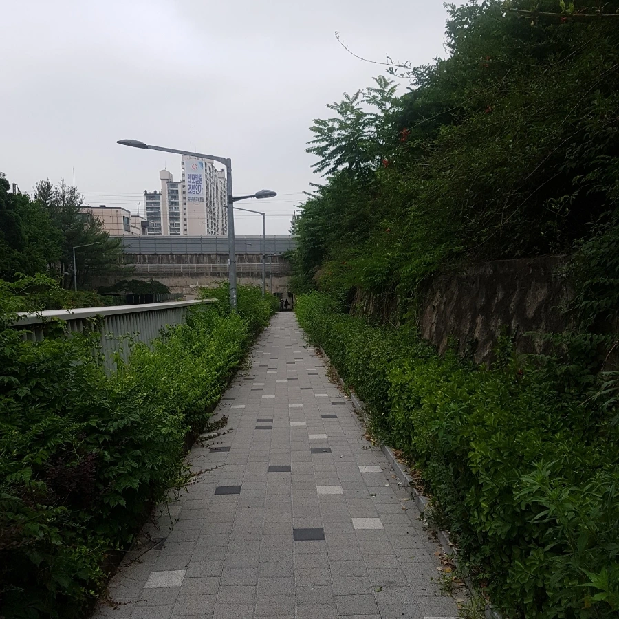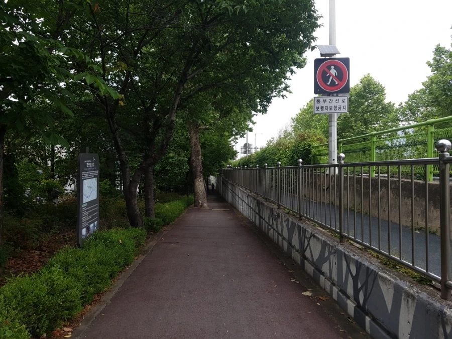 필자가 둑길로 걷지 않고 산책길로 걸어 나갔기에 겸재교 지점 벗어나서부터는 일반 보도길로 이어졌다. 겸재교를 지나가면 육교가 하나 나오는데 이는 배봉산둘레길로 이어지는 연결 통로니 참조하시기 바란다.