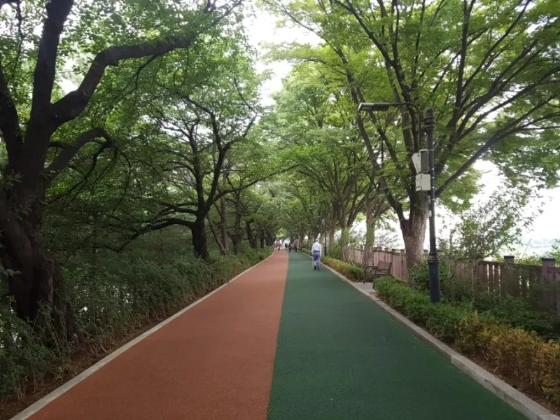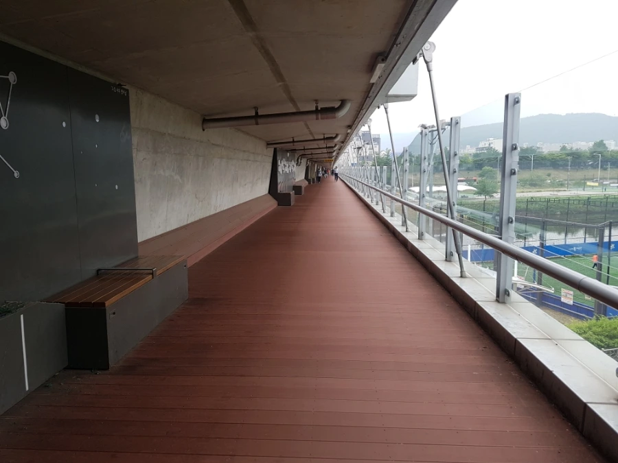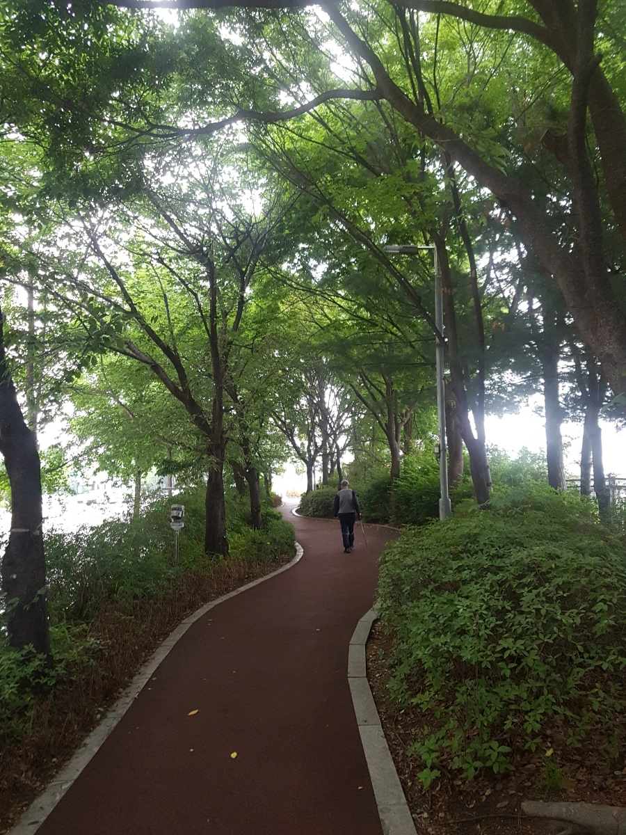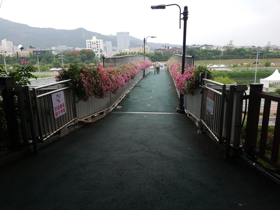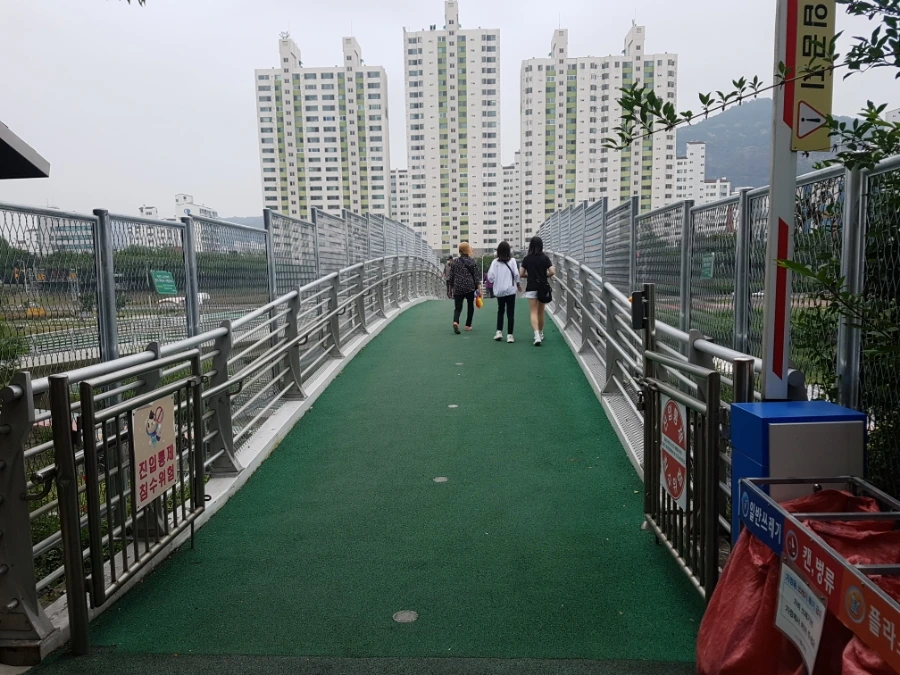 필자가 둑길로 걷지 않고 산책길로 걸어 나갔기에 겸재교 지점 벗어나서부터는 일반 보도길로 이어졌다. 겸재교를 지나가면 육교가 하나 나오는데 이는 배봉산둘레길로 이어지는 연결 통로니 참조하시기 바란다.