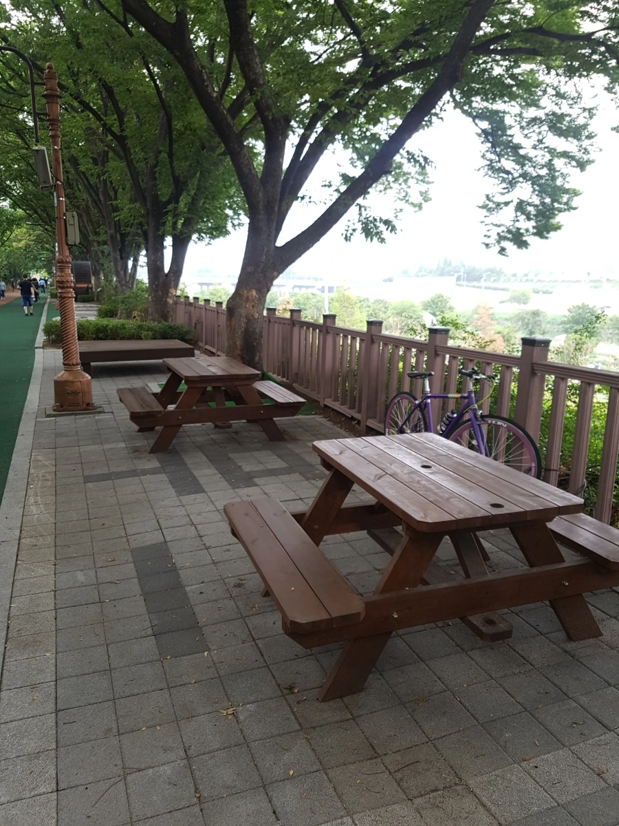 체육시설물과 마찬가지로, 휴식 공간도 굉장히 많았다. 그냥 벤치에 앉는 것이 아닌, 중랑천을 바라보며 힐링을 하는 휴식이다. 그래서 전혀 휴식이 필요하지 않았음에도 중랑천 전망을 보며 멍 때리고 싶어서 일부로 몇 번이나 벤치에 잠시 앉았다 가곤 했다.