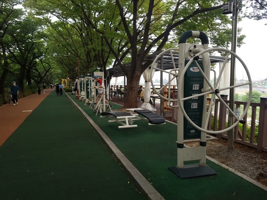 산책길 우측에는 운동 시설물이 계속 보였다. 주민들께서 열심히 운동하고 있는 모습을 보니 나도 건강해지는 느낌이 들더라. 기구가 워낙 많아 치열한 경쟁 없이 바로 이용하는 것이 가능했다. 걷기 운동과 기구를 이용한 다양한 운동을 동시에 할 수 있는 곳이라는 점이 큰 장점인 중랑천 길이라고 할 수 있겠다.