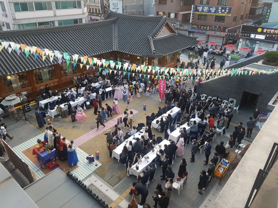 끝까지 둘러본 뒤, 집으로 가다가 서울한방진흥센터에서 전통혼례가 거행 중인 것을 보고 잠시 지켜봤다. 체험이 아니라 찐 결혼식이었다. 내가 갔을 무렵에는 혼례식 막바지로 혼주들은 사진 촬영을, 하객들은 식사를 하고 있더라.