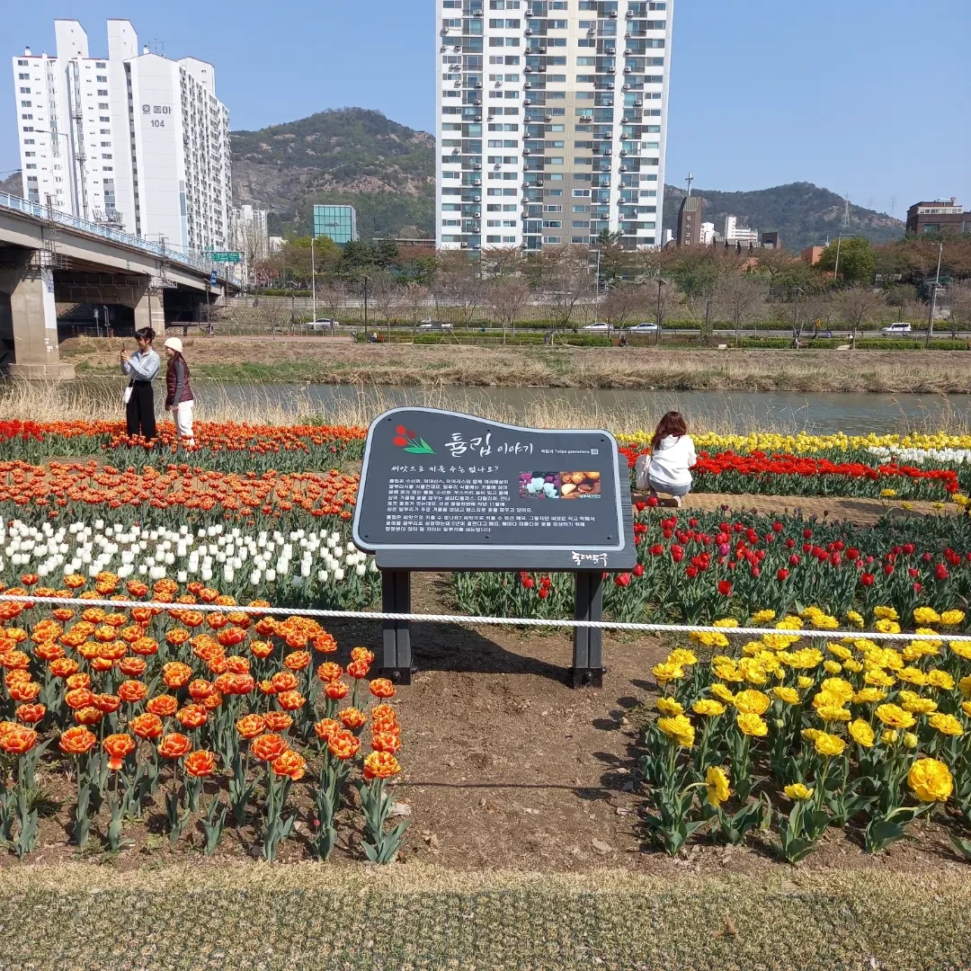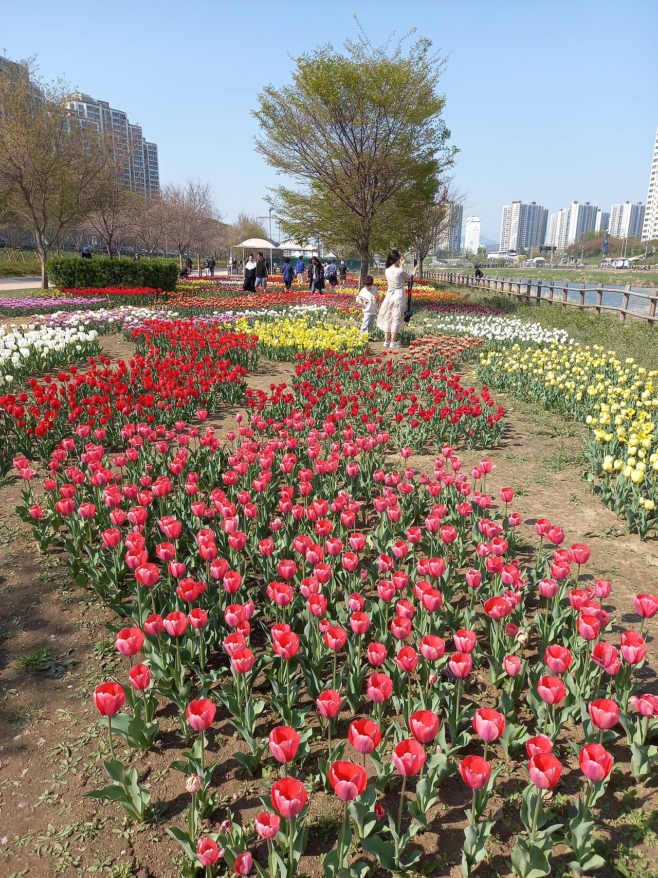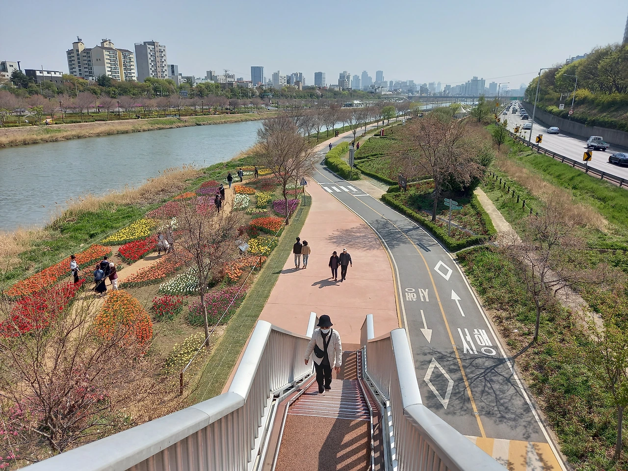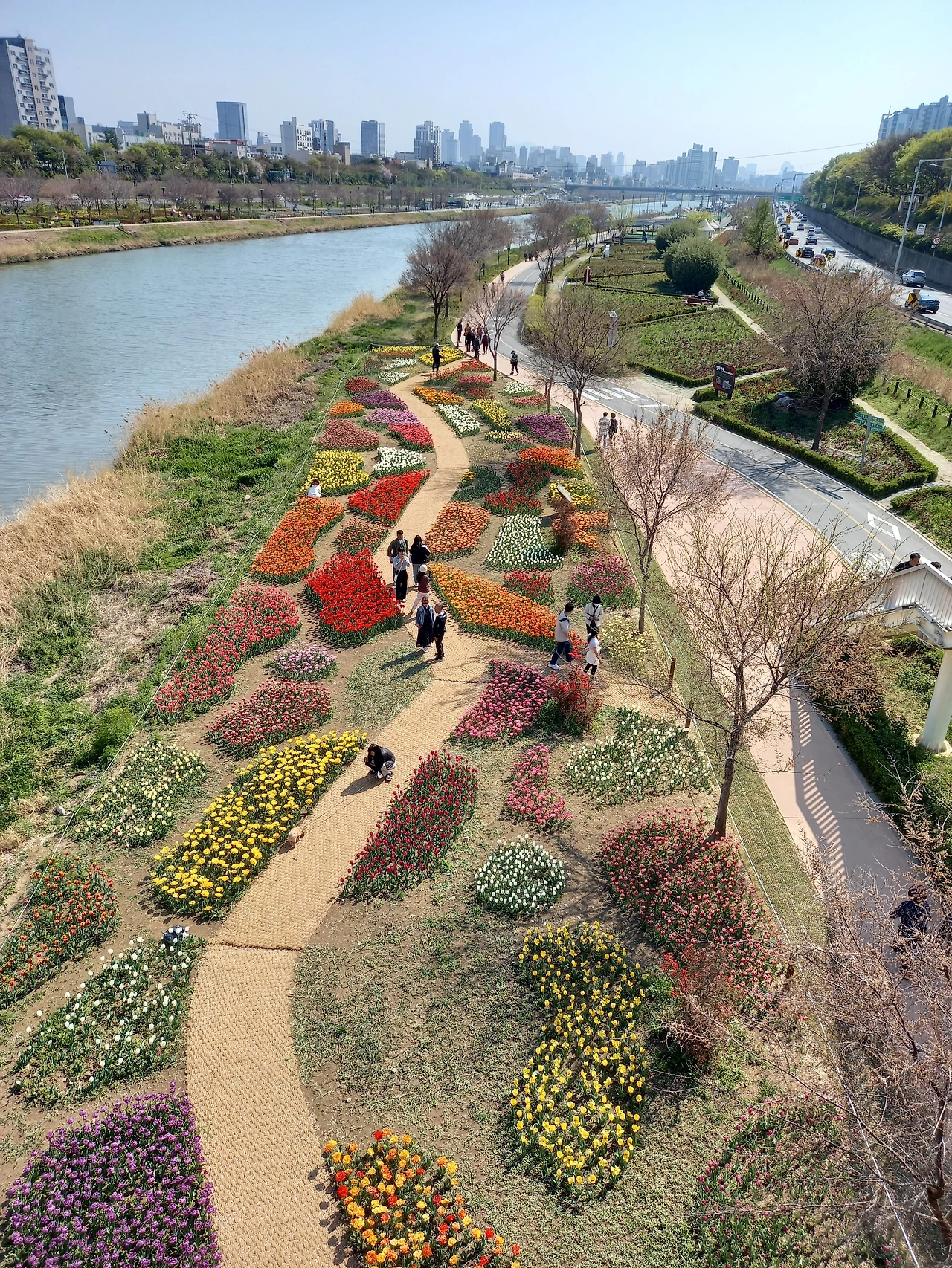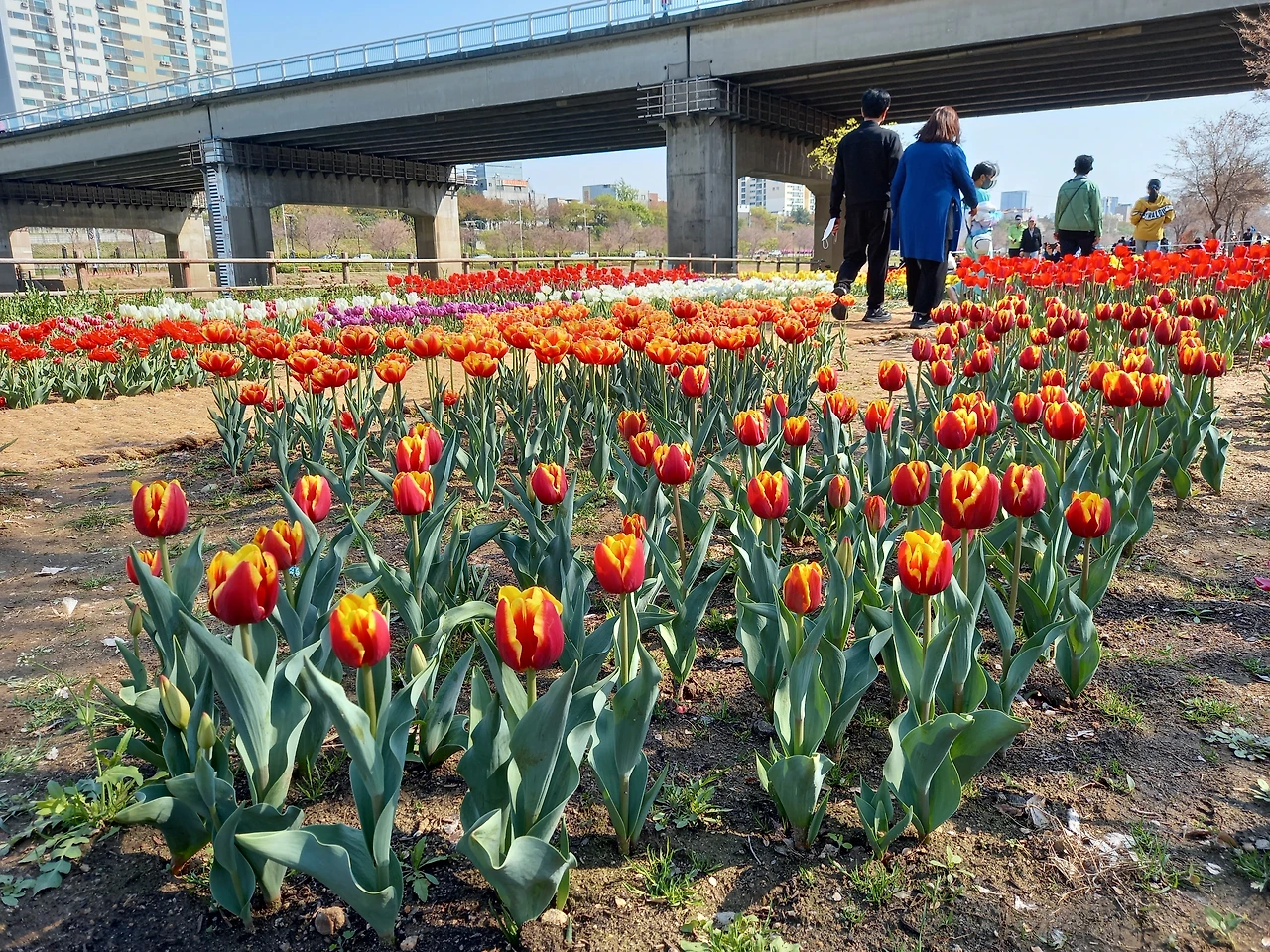 벚꽃으로 유명한 중랑천 산책길. 이제는 튤립이 있는 곳으로도 널리 알려질 것이다. 원래도 좋았던 곳인데, 지금은 "금상첨화"라고 할 수 있겠다.