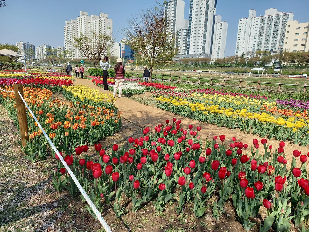 꽃 자체도 좋은데, 가족, 친구, 이웃, 연인, 혼자 온 사람들이 저 마다 즐기는 모습이 인상적이었다. 활짝 핀 튤립처럼 사람들의 웃음꽃도 활짝 피었다. 남녀노소의 사람들이 서로 사진 찍어주고 셀카도 찍는 모습에서 웃음이 끊이지가 않더라. 웃고 즐거워하는 모습을 보니 덩달아 나도 즐겁더라.