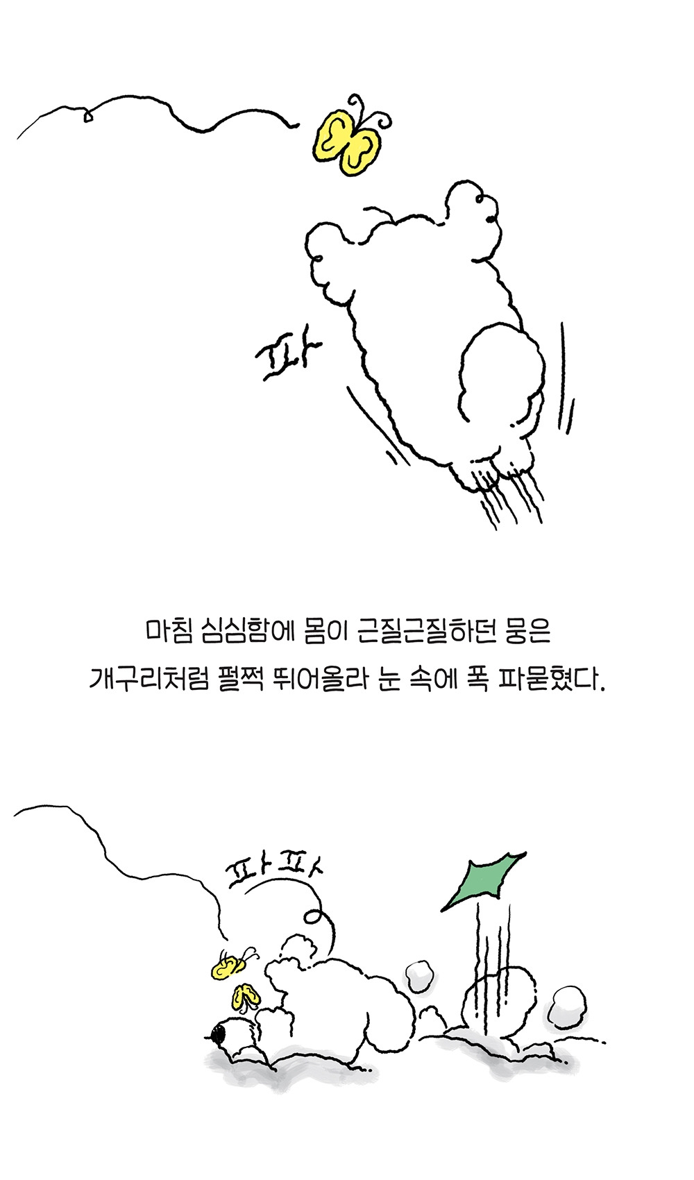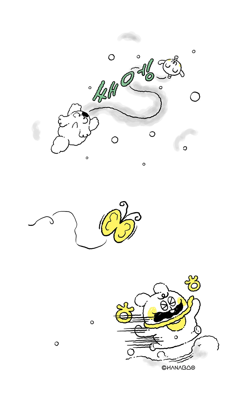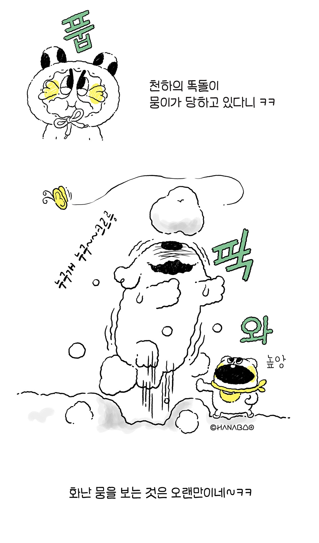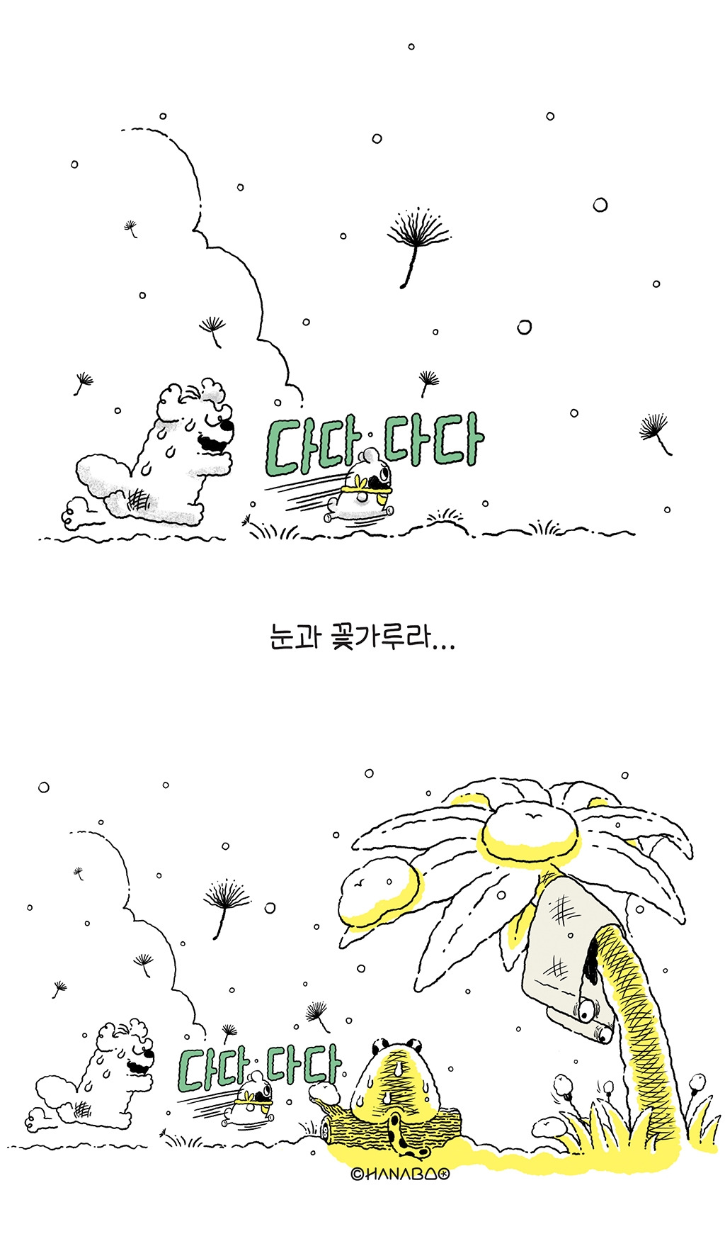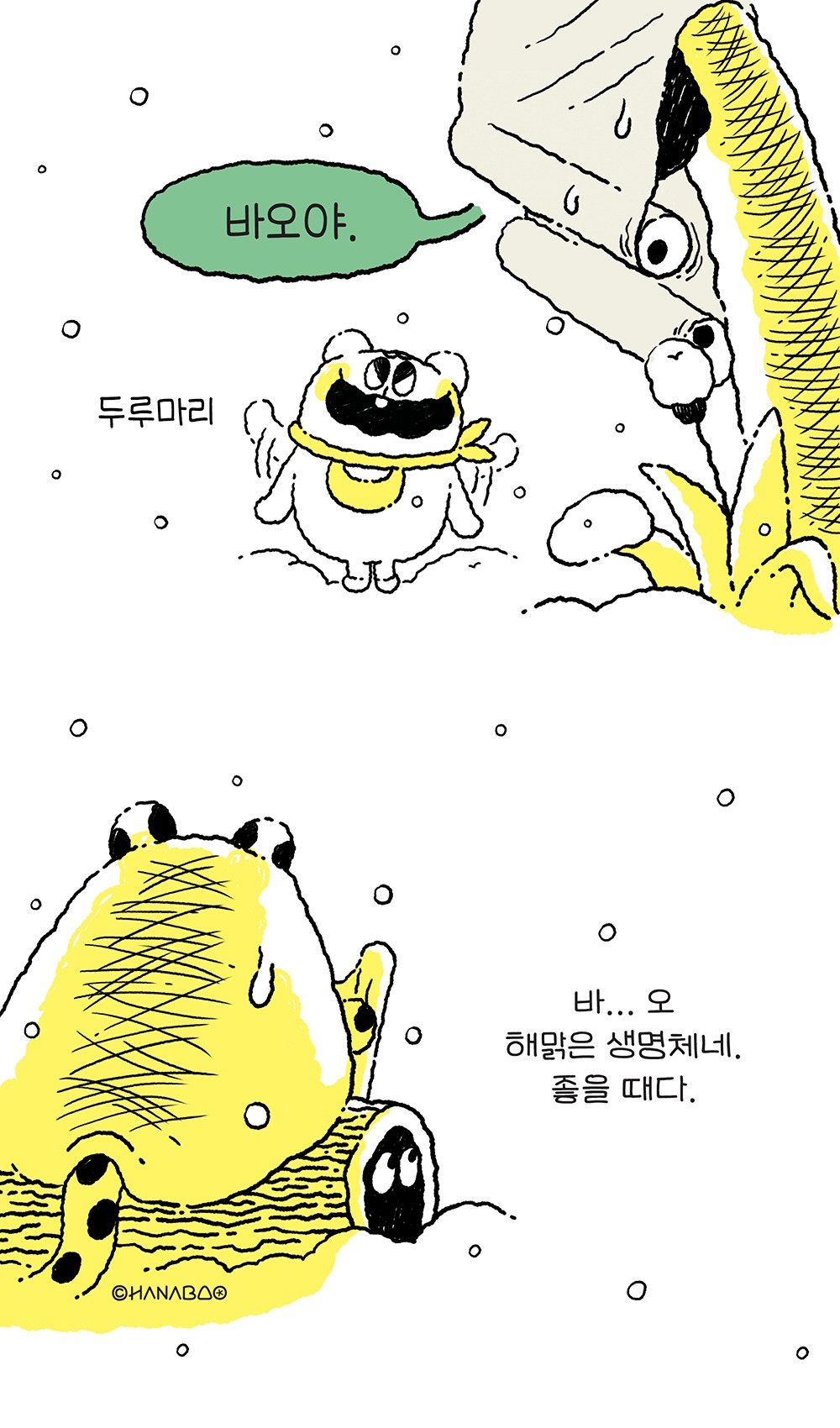 브런치로 처음 연재를 시작하는 하나바오 작가 현입니다. 하나바오는 2020년 11월 11일 독립출판으로 제작된 만화그림책입니다. 1권은 삼수생 하나와 댕댕이 뭉의 따뜻하고 귀염 뽀작한 세상을 담고 있습니다. 2권은 본격적인 여름섬의 모험담을 담아낼 예정입니다.
